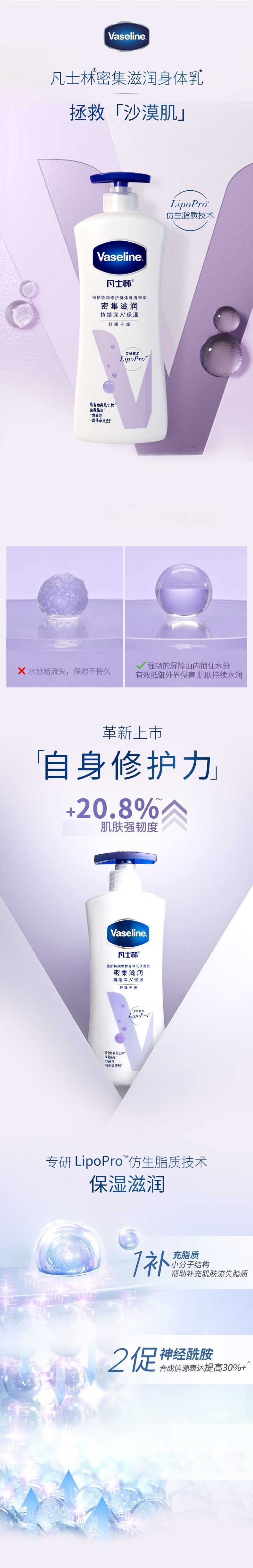 凡士林(Vaseline)倍护特润修护身体乳清香滋润保湿舒缓干燥清爽不油腻男女士润体乳 400ml密集滋润【清香型】x1瓶 凡士林