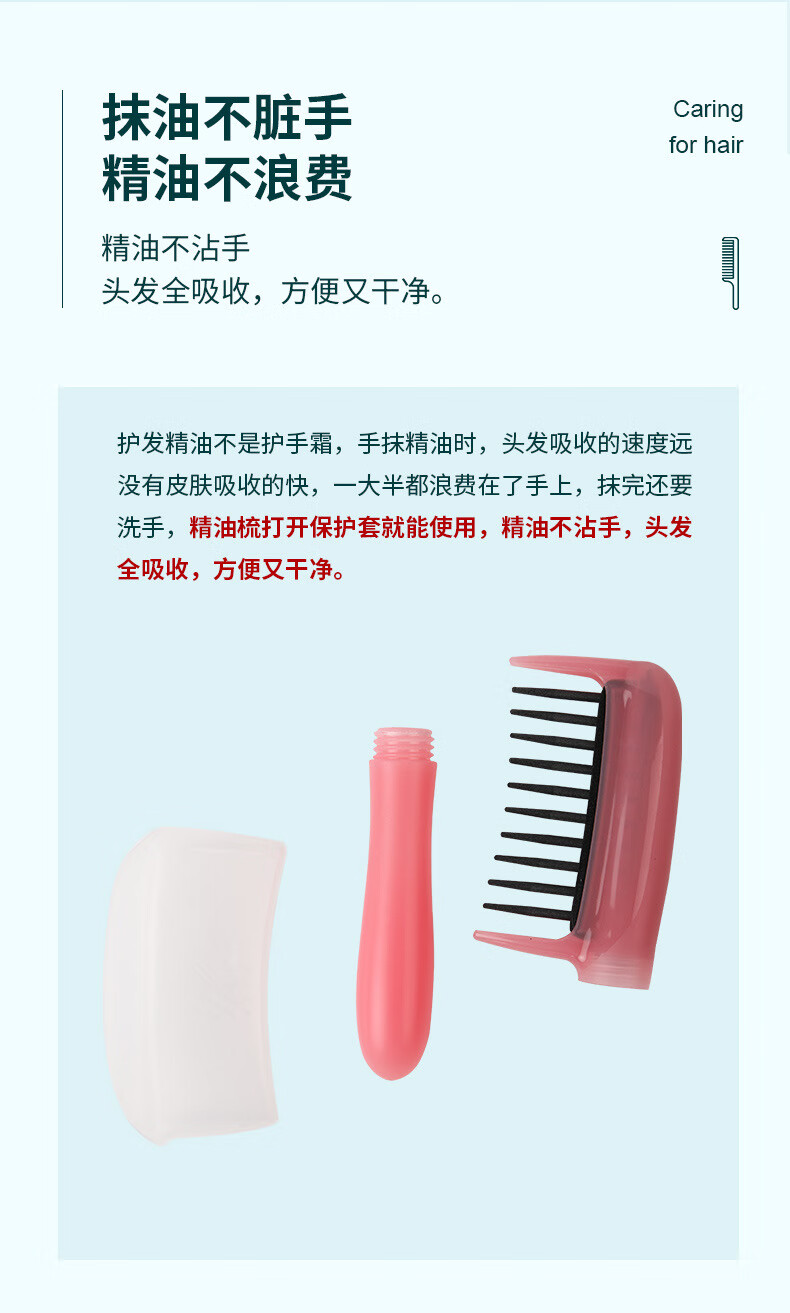 哈乐熊 HA LE BEAR精油导入梳头皮上药器焗油补水香精华导入梳护发养发不伤发女士梳 粉色精油梳