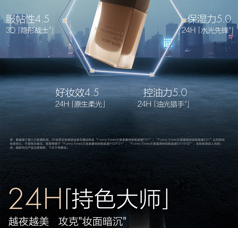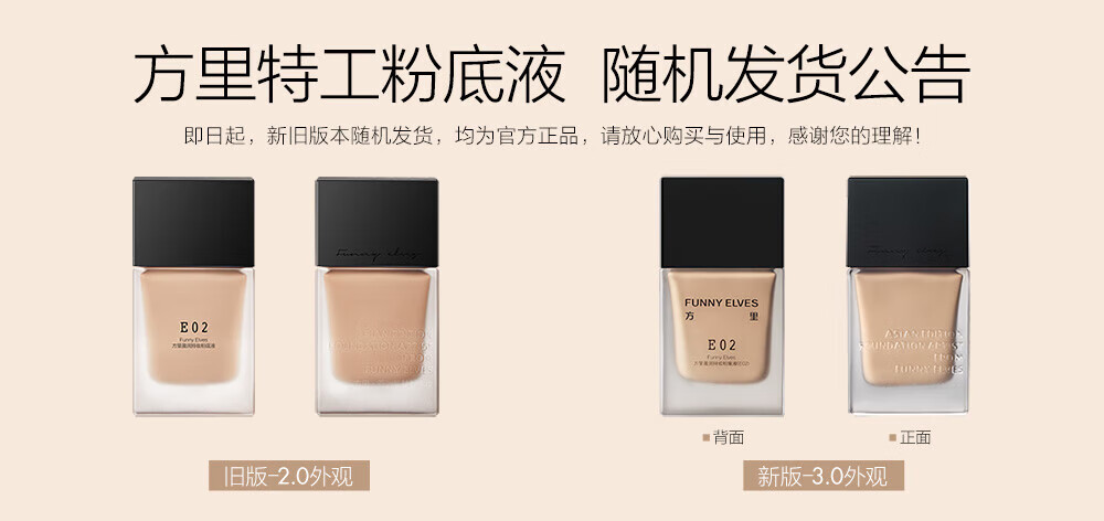 方里侯明昊同款持妆粉底液E02 干皮自然白持妆服帖25ml 新年礼物