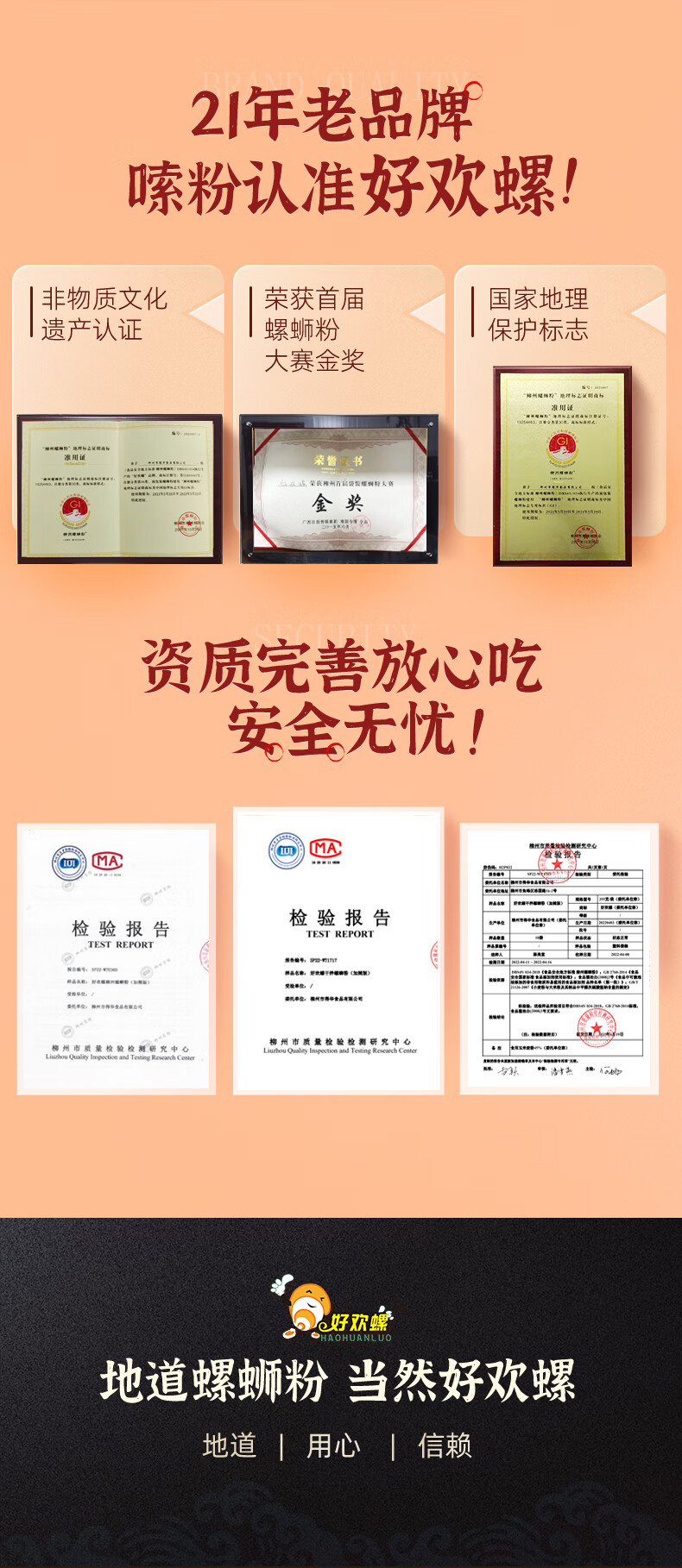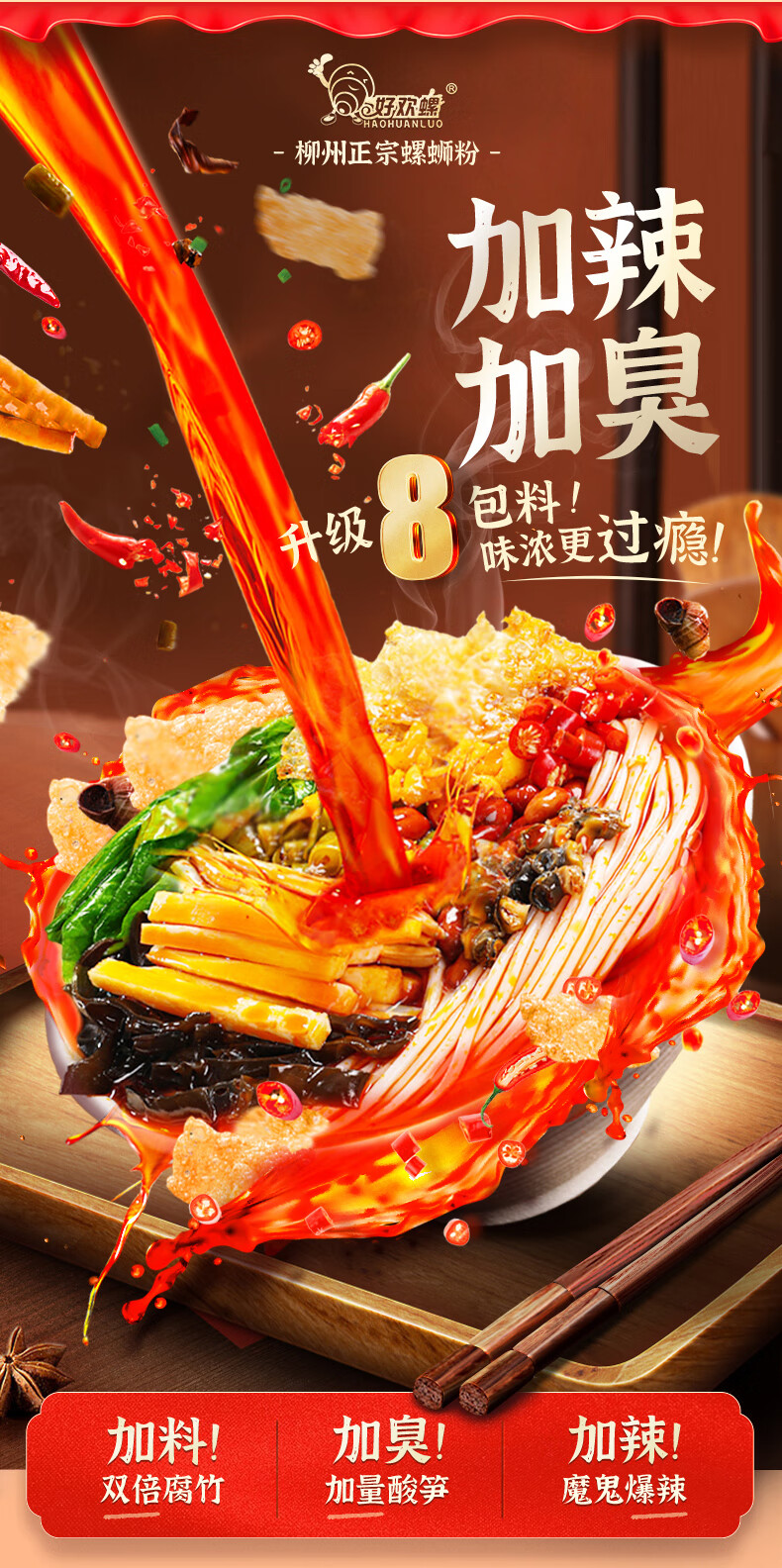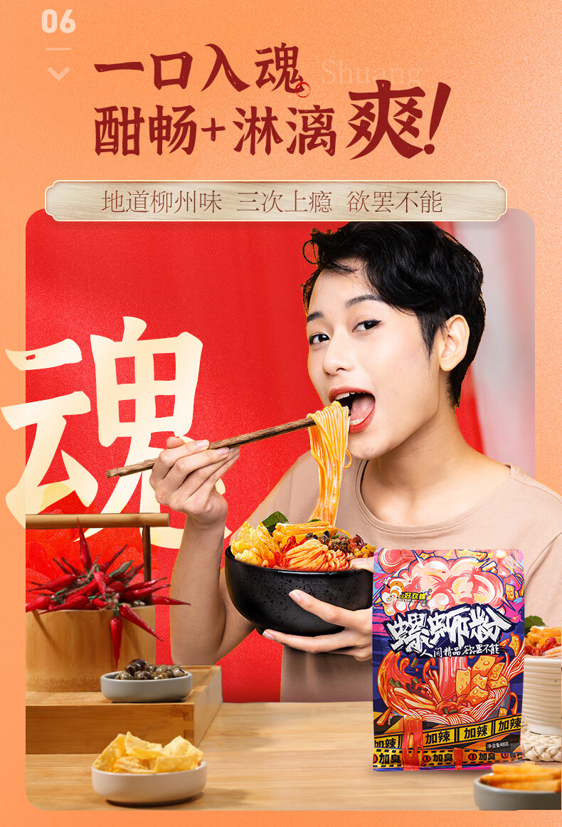 好欢螺螺蛳粉广西柳州特产米线酸辣速食加辣加臭版400克*6袋礼盒螺狮粉