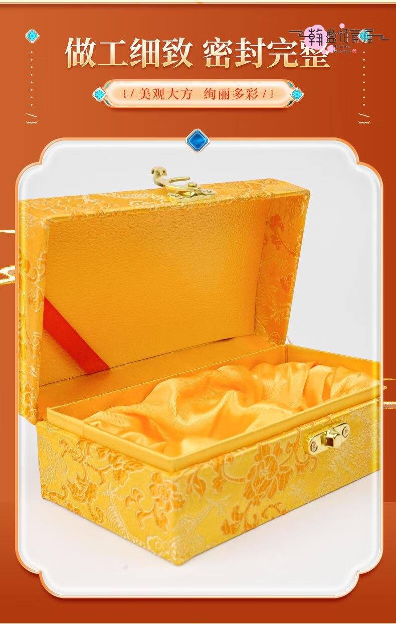 高档安宫丸牛黄丸礼盒空盒包装盒包装六角锦缎盒饰盒支持定制可装 黄色 16x9x6.5cm