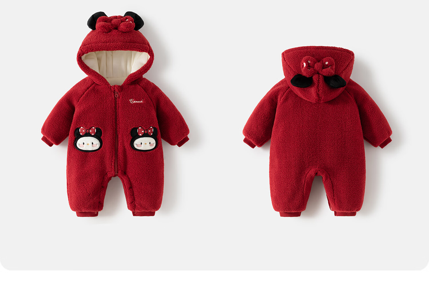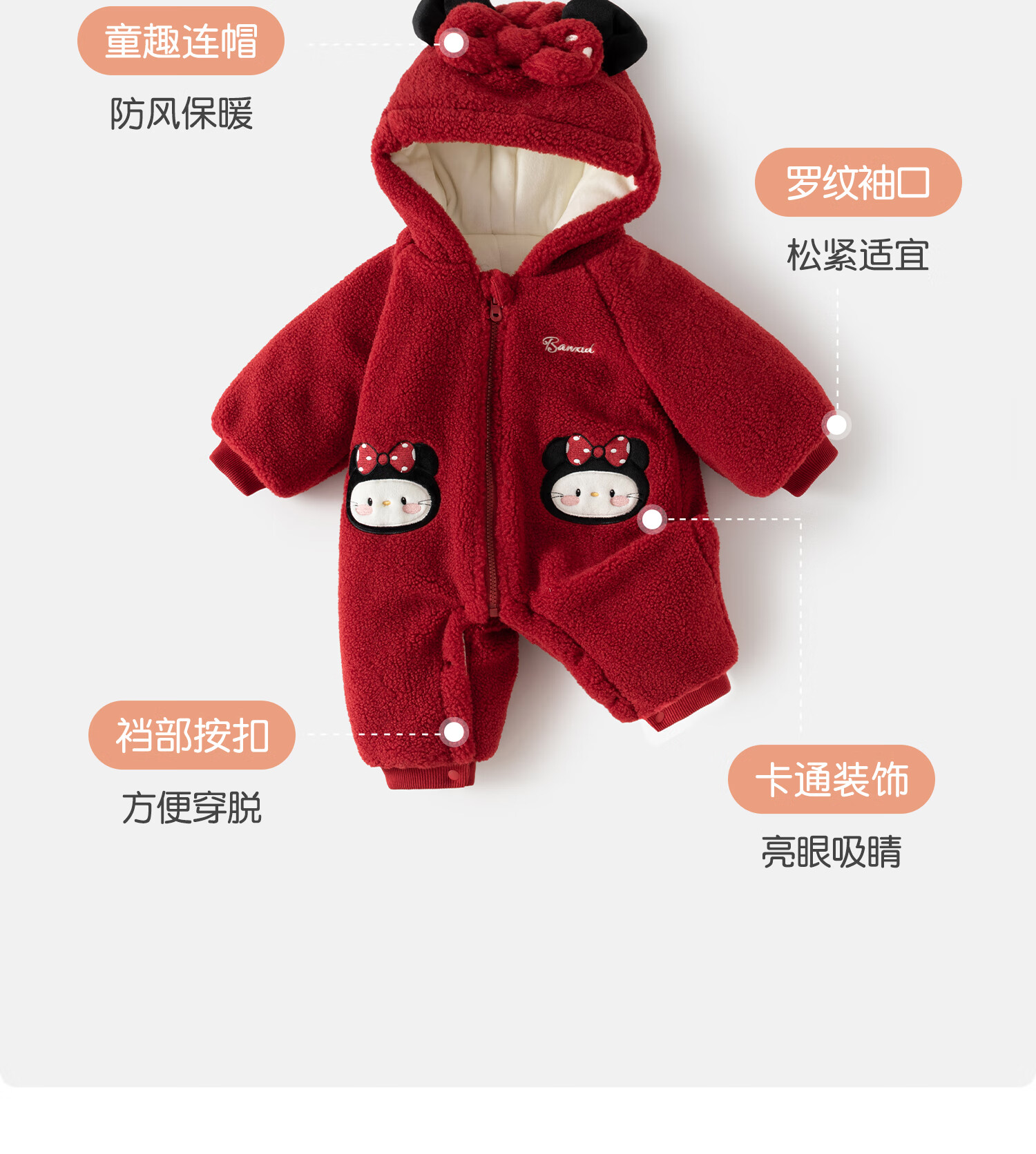 班喜迪婴儿衣服冬装婴幼儿连体衣加绒夹棉宝宝哈衣连帽公主爬服拜年服冬