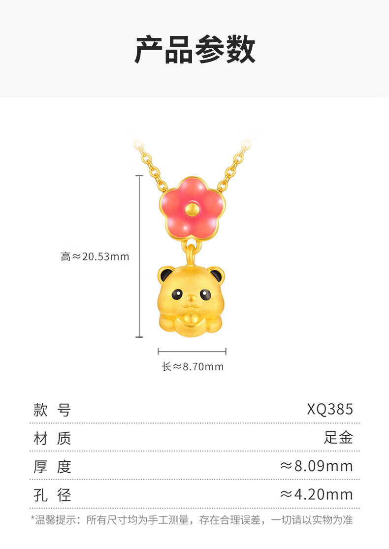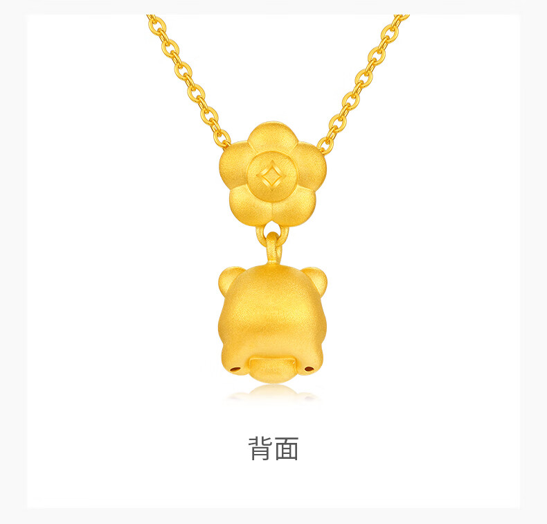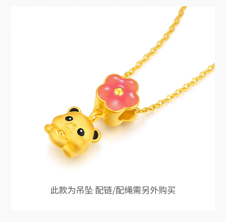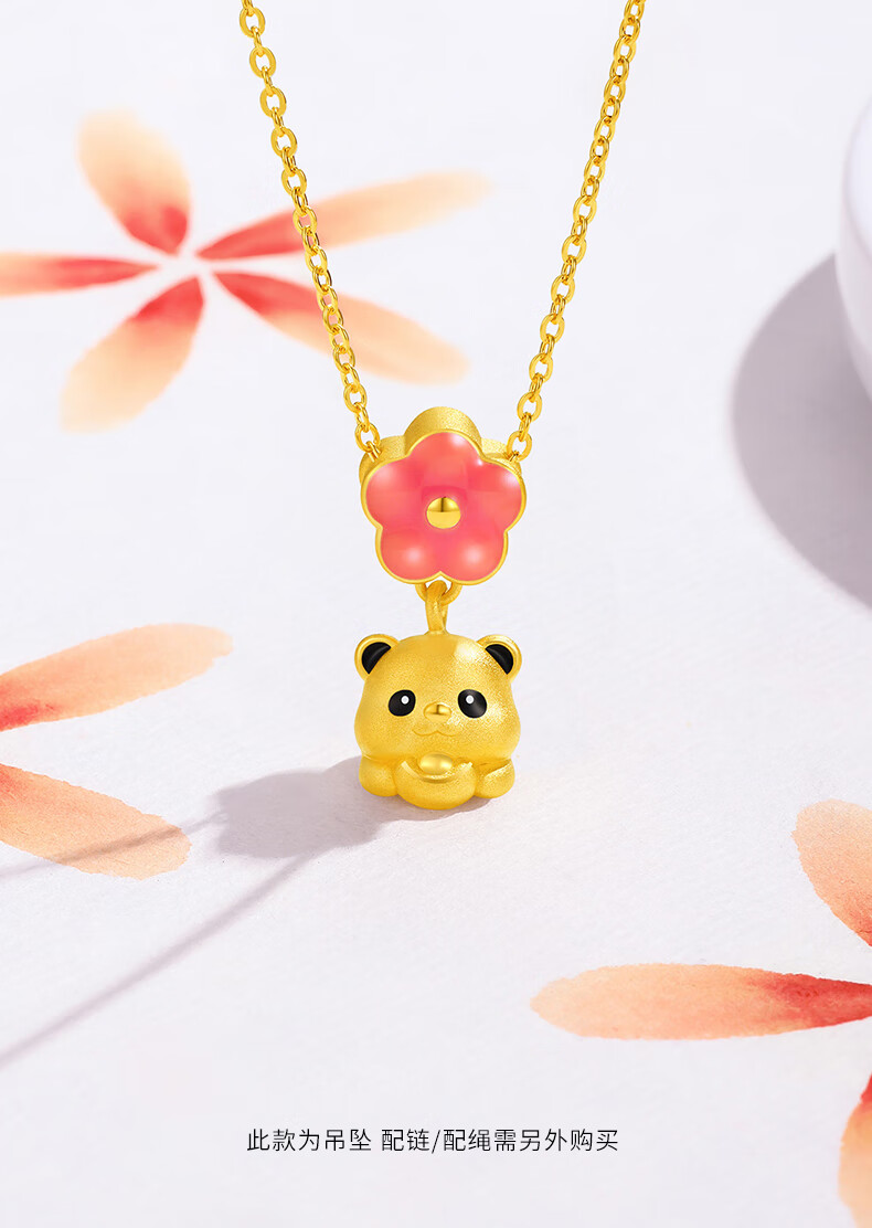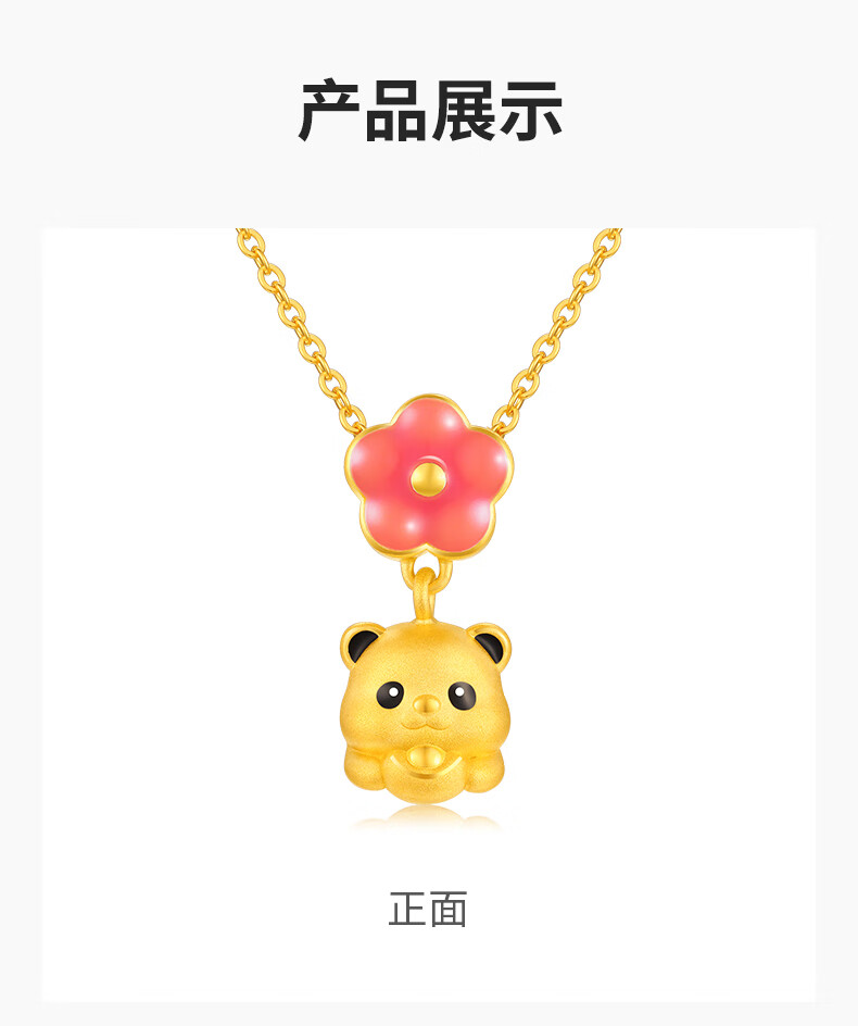 谢瑞麟(TSL)新年礼物富足熊猫系列熊猫桃花黄金吊坠5D硬金工艺不含链XQ385