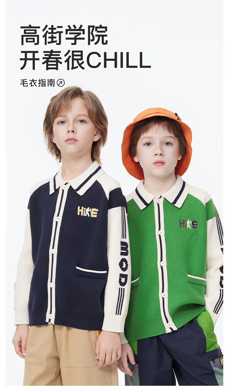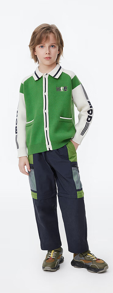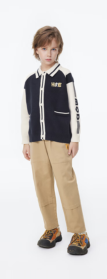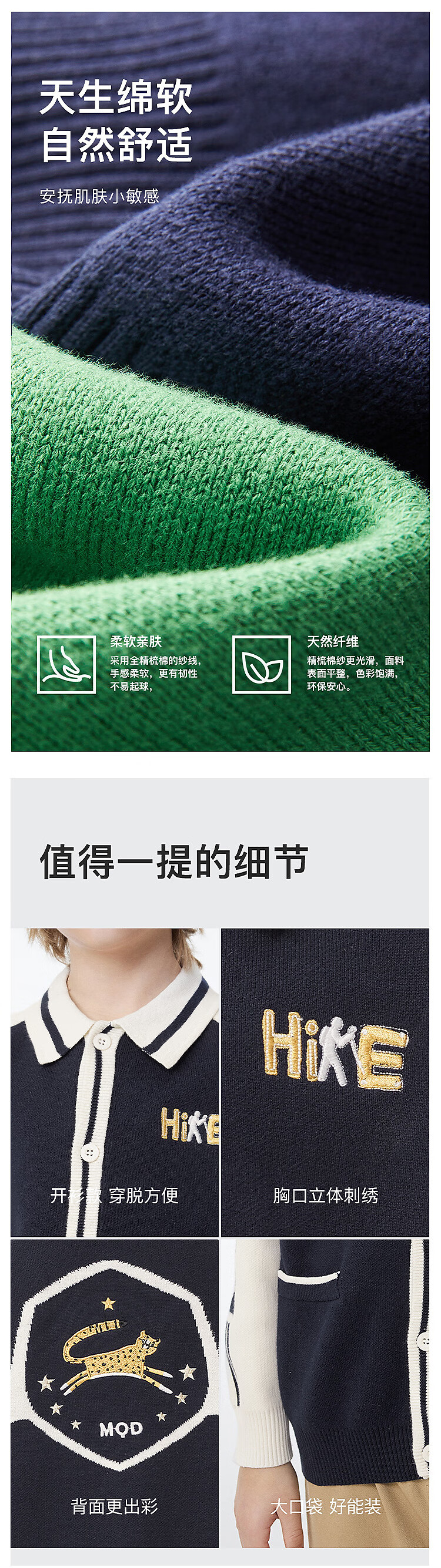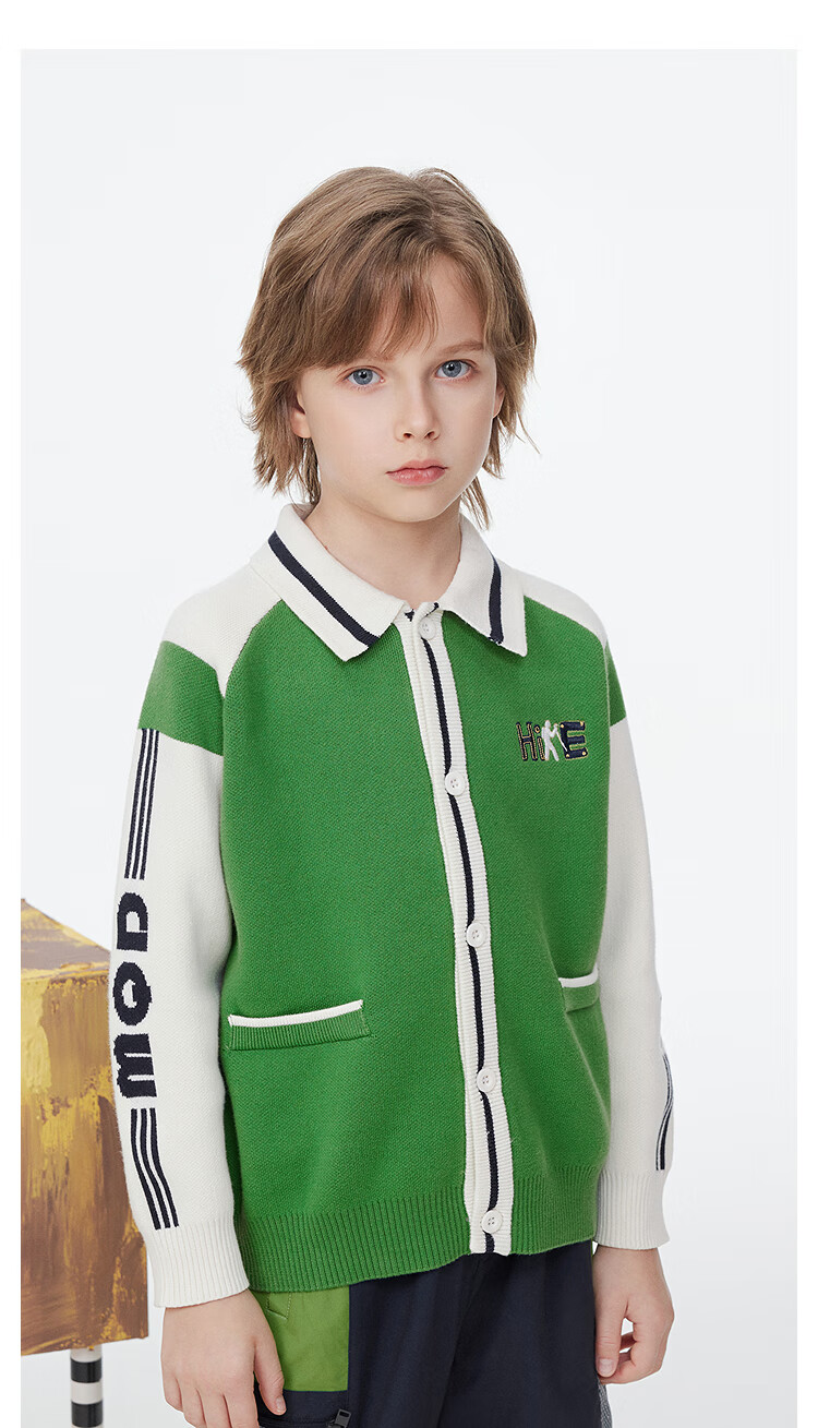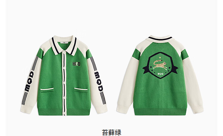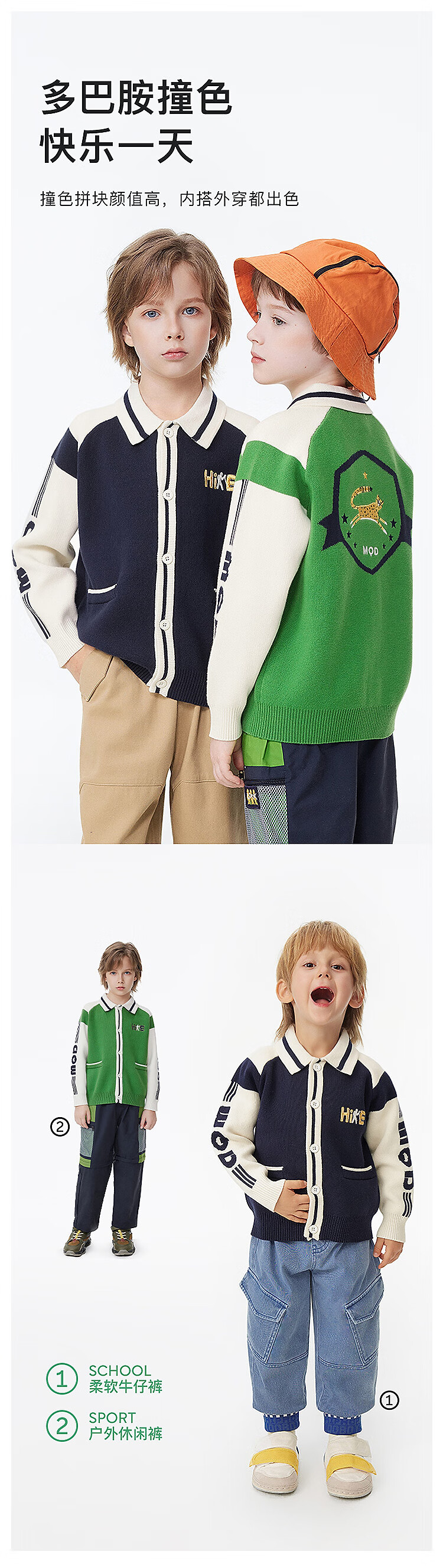 MQD童装男童开衫毛衣2024撞色翻领学院风复古儿童针织外套潮 藏青 160