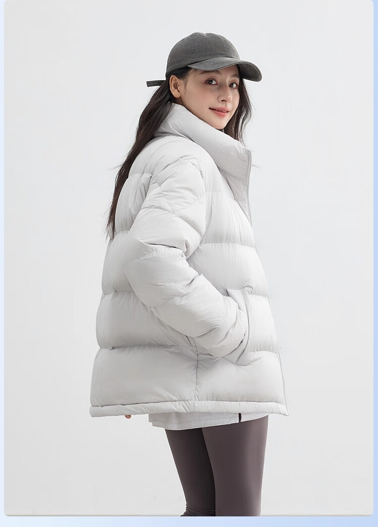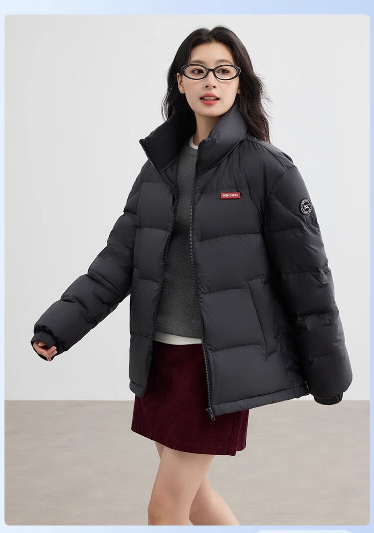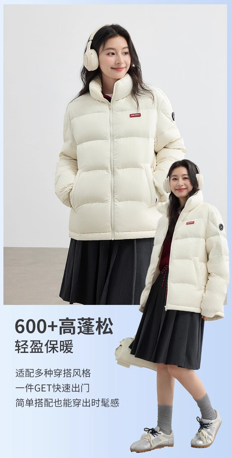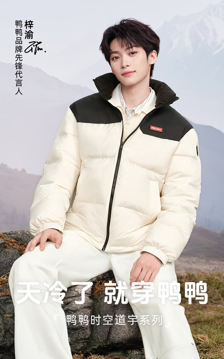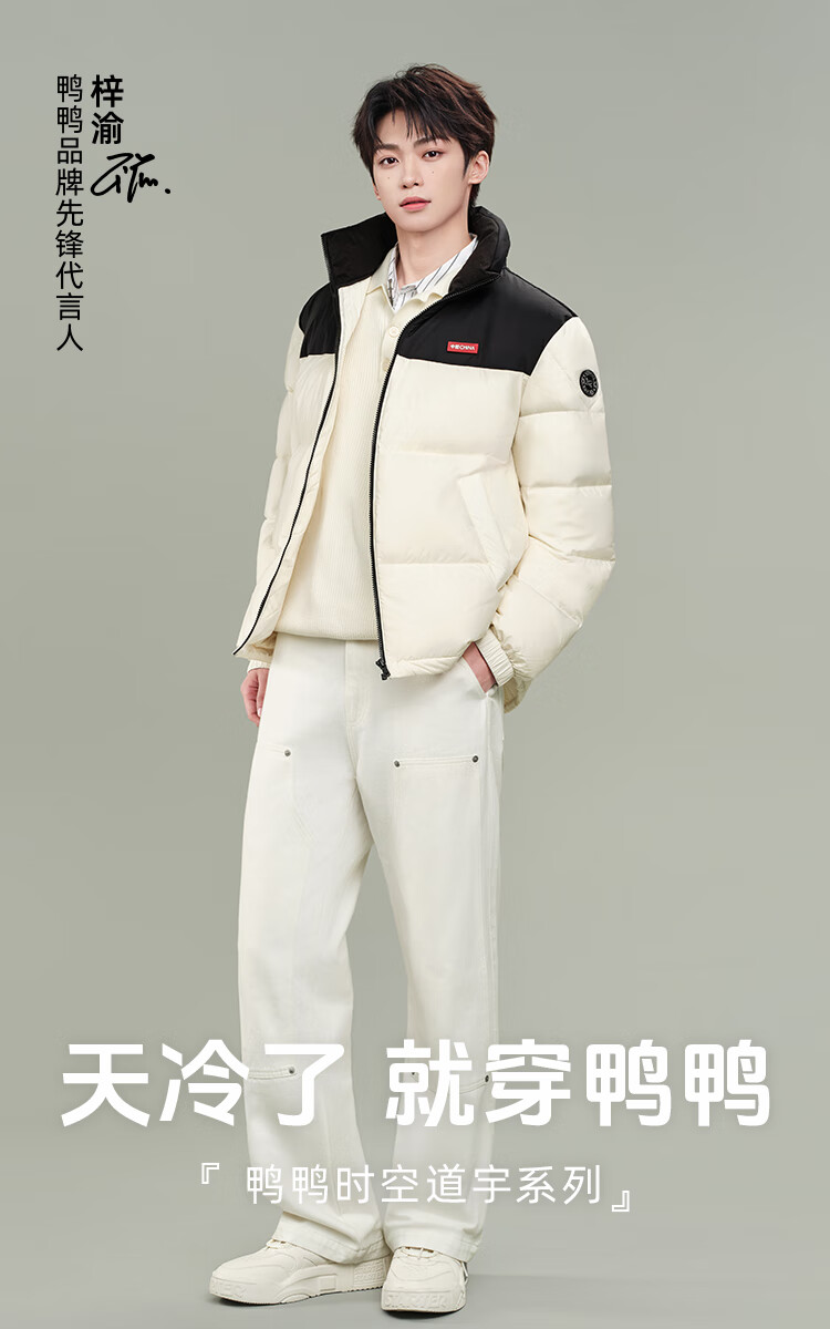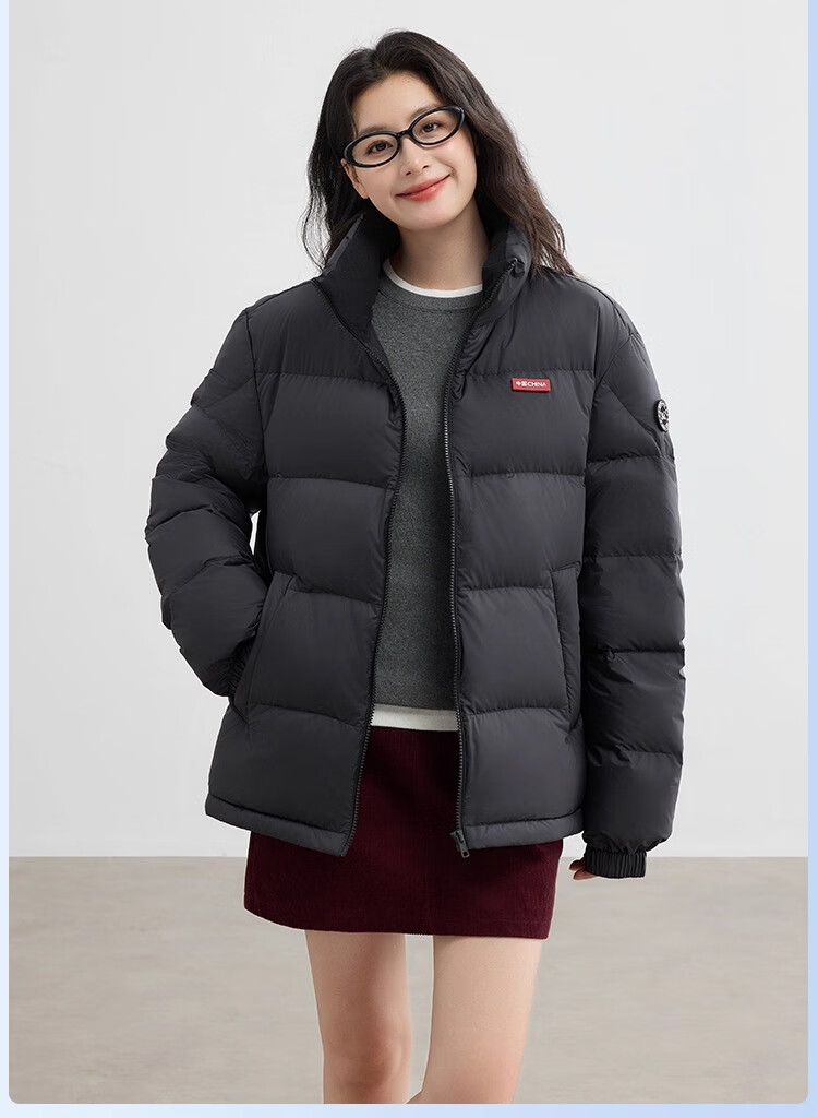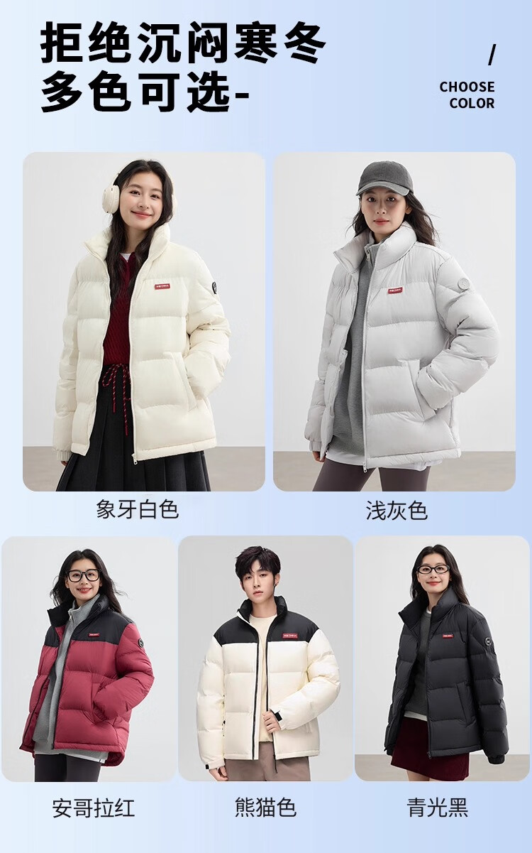 鸭鸭(YAYA)梓渝同款羽绒服女士2025年冬季新款情侣短款立领保暖面包男外套HY 青光黑色 M 170/88A