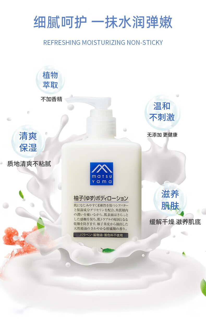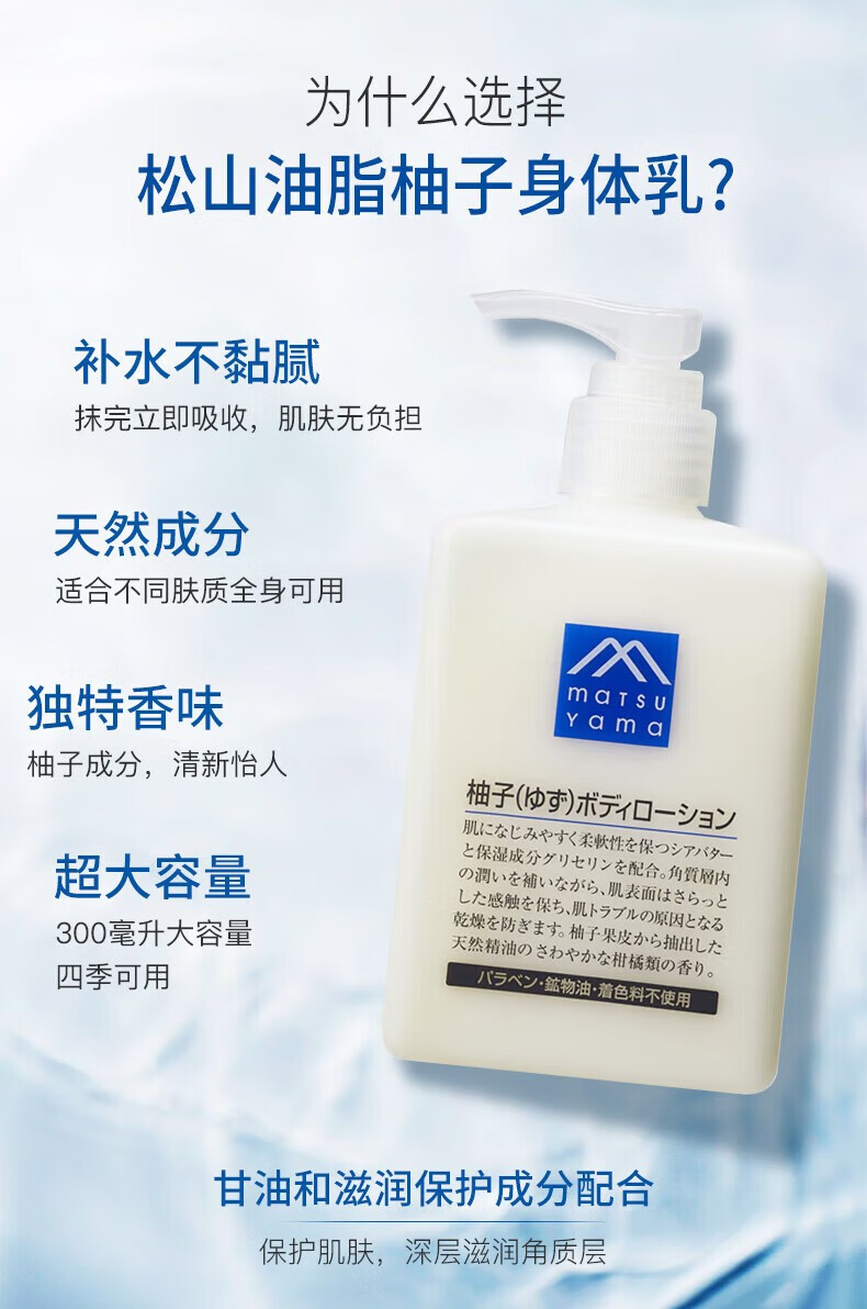 松山油脂柚子身体乳精华润肤露300ml留香全身滋润保湿润肤乳 身体乳一瓶