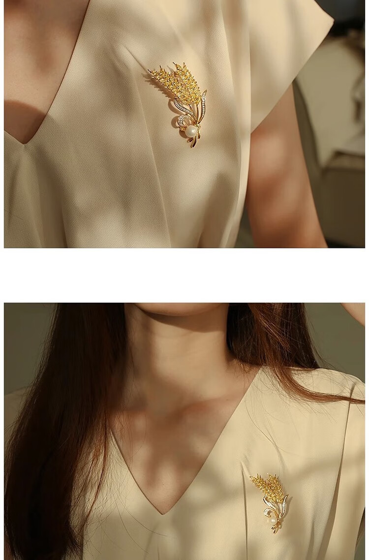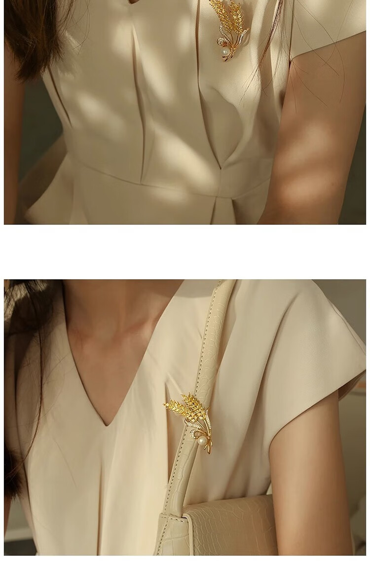 纪诗哲(GIEVSZHE)金色麦穗珍珠胸针高档女西装大衣外套胸花胸针女生生日礼物送女友 双麦穗珍珠胸针