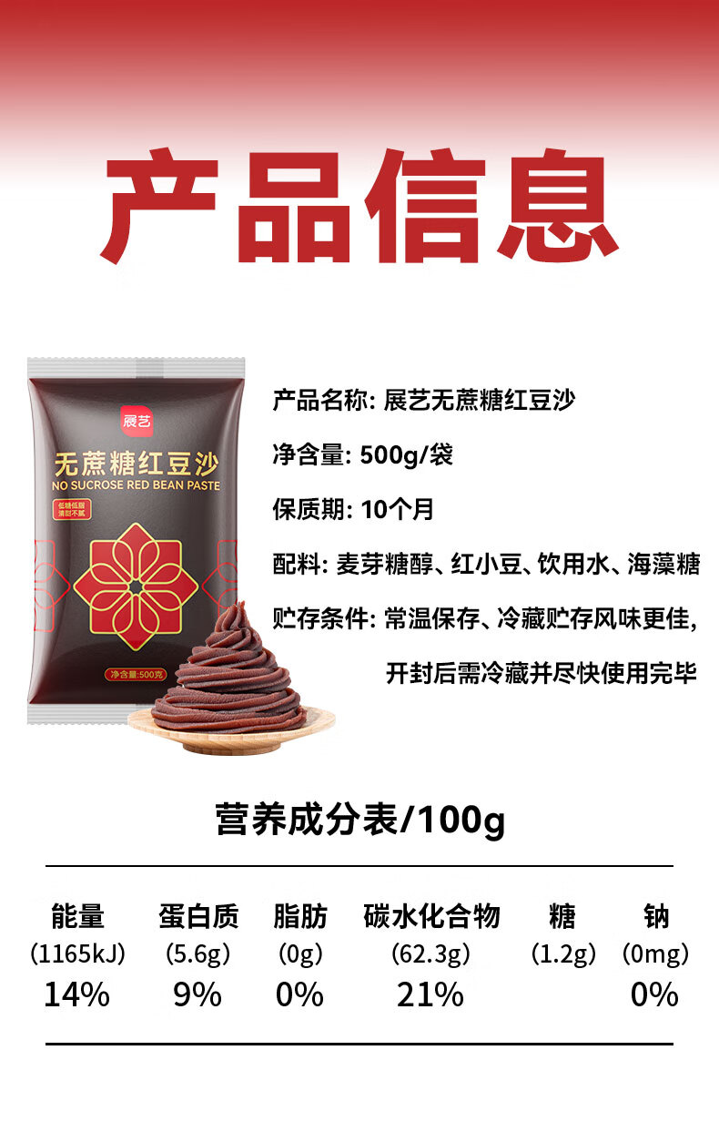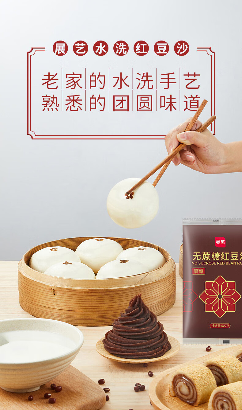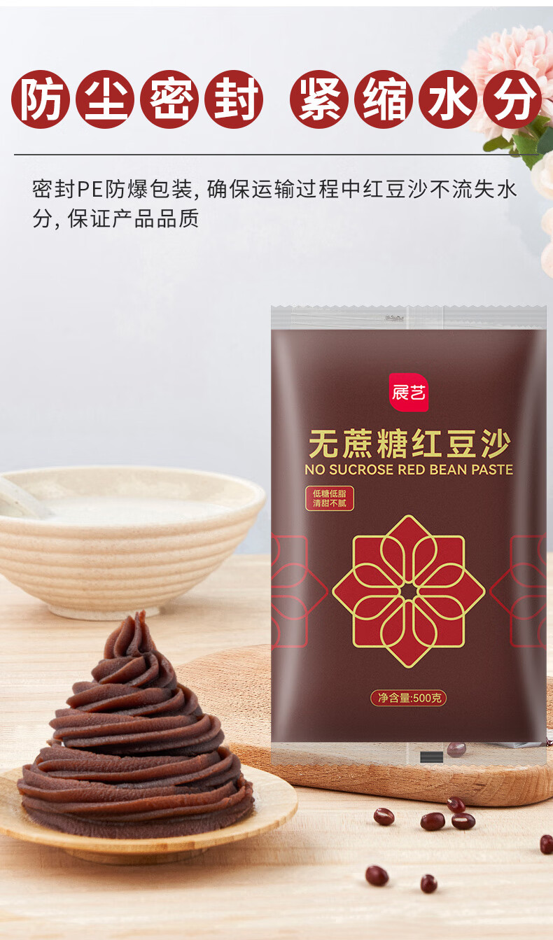 展艺无蔗糖红豆沙馅 糕点馅料汤圆甜品包子豆沙包蛋黄酥烘焙原料 500g