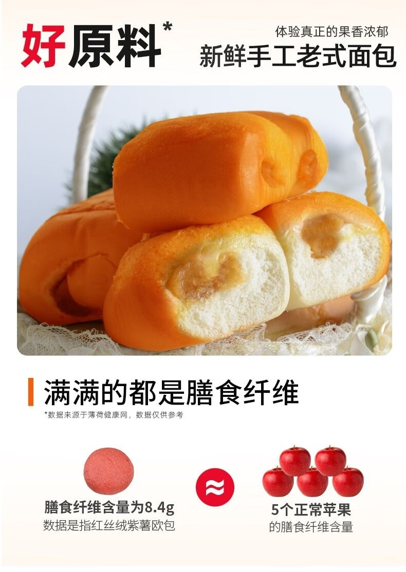 嘉冠120g红豆沙夹心面包老式经典超市同款 套餐:(120g/袋)6袋老面包 (红豆沙馅)