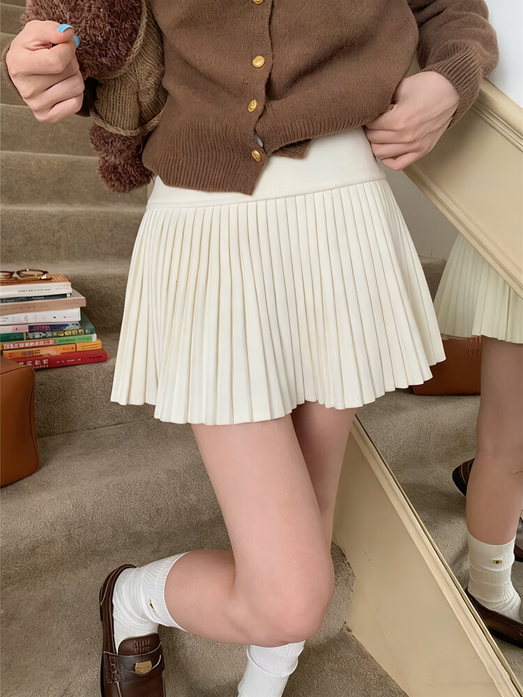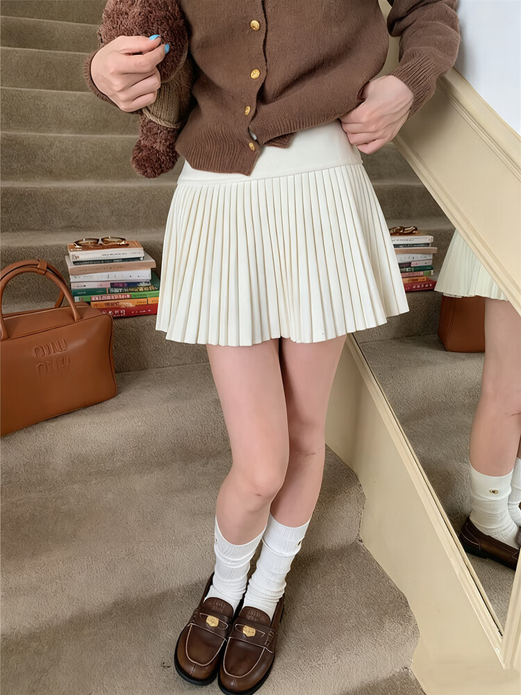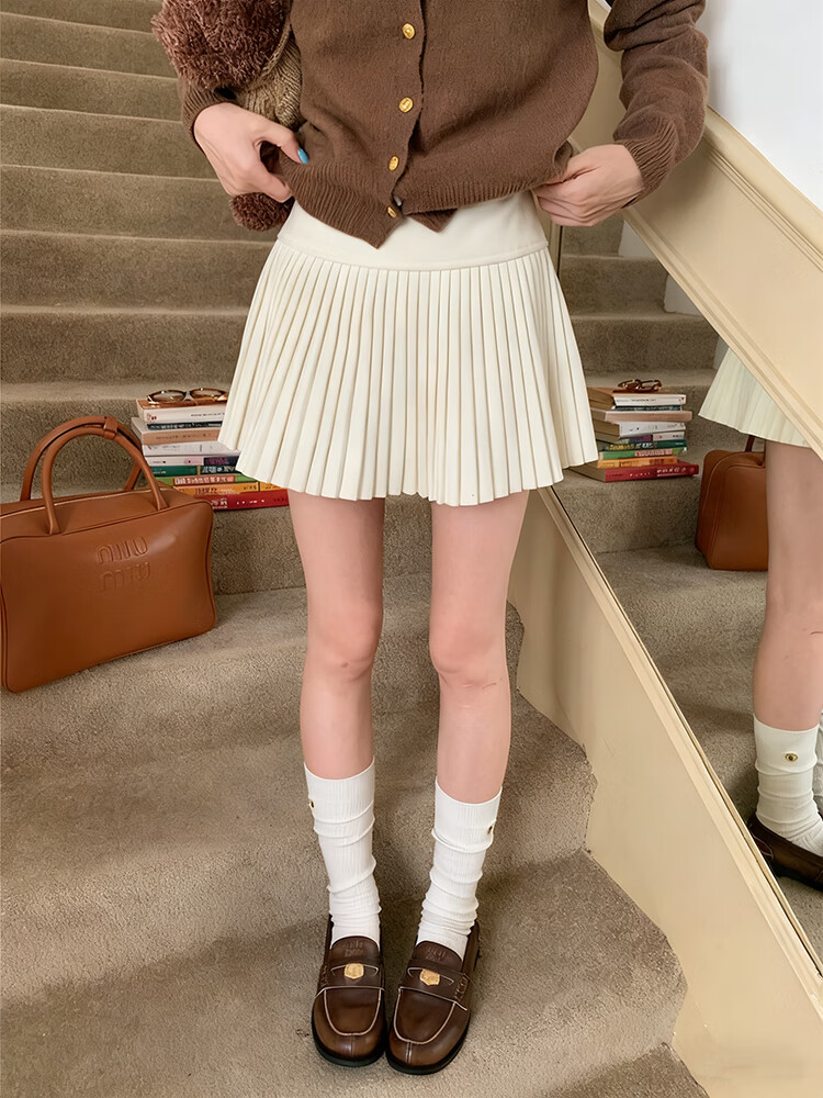 麓格立百褶裙女风琴秋季2025新款高腰西装半身裙显瘦防走光a字jk短裙 白杏色百褶裙 S