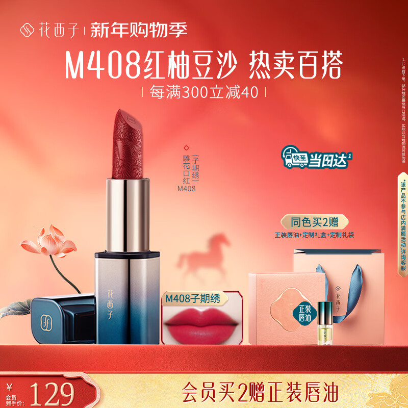 花西子雕花口红M408子期绣唇膏滋润不掉色提气色显白生日礼物女