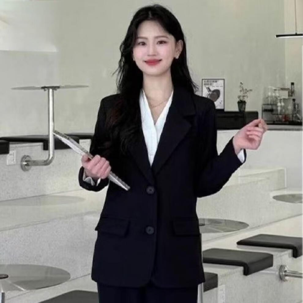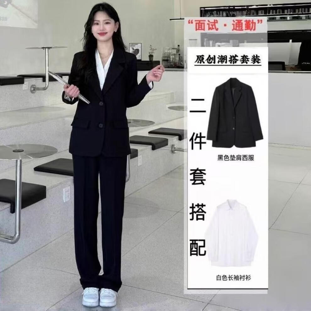 梵奥格(FANAOGE)小个子西装套装女生西装一整套大学生答辩面试工作服正装职业装 三件套[正装西服+白衬衫+西裤] 带垫肩 XL 【建议120-135斤】 急件当日发-联系客服可顺丰