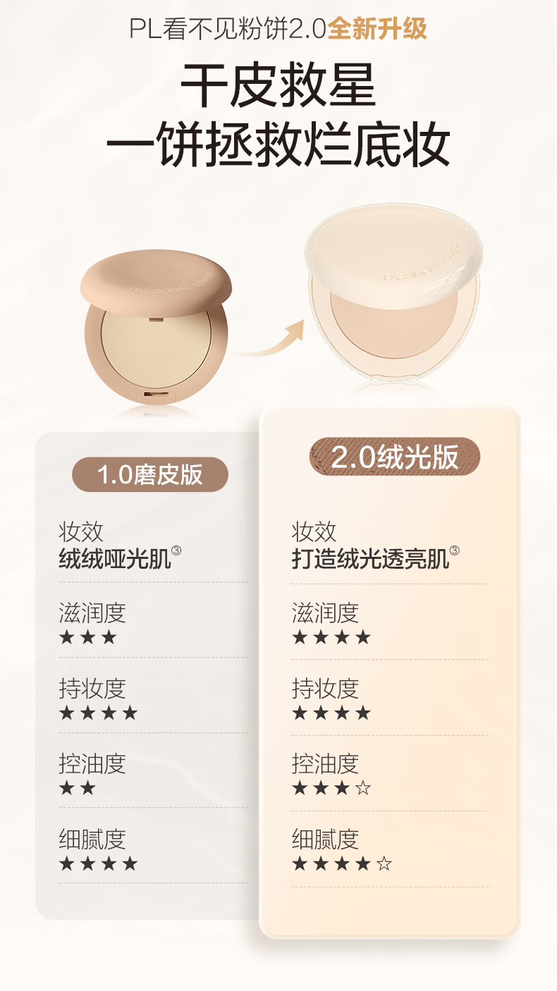 恋火(Passional Lover)【卢昱晓同款】PL看不见粉饼2.0象牙白10g定妆控油补妆散粉蜜粉饼