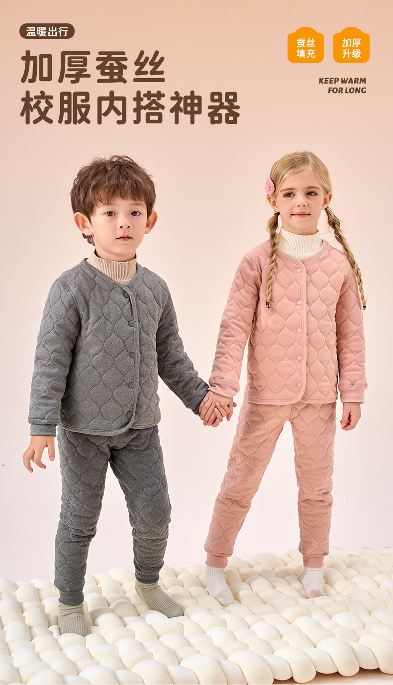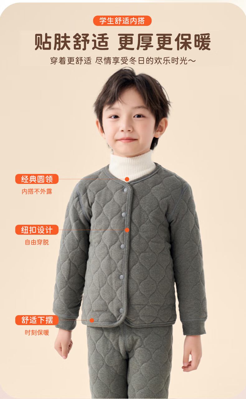 罗蒙儿童保暖衣女童棉服内胆男童冬季加厚内搭保暖裤 单裤子灰色 130
