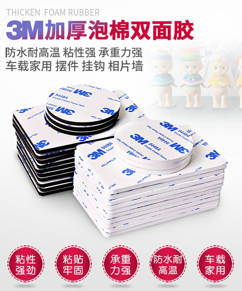 3M强力双面胶泡棉粘贴片高粘度无痕摆件固定胶带圆形家用加厚泡沫胶 20片 直径30mm*厚度3mm 黑色