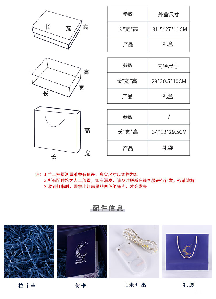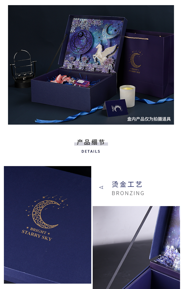 TaTanice礼盒空盒新年礼物情人节生日礼物盒礼品包装盒伴手礼盒 蓝色立体