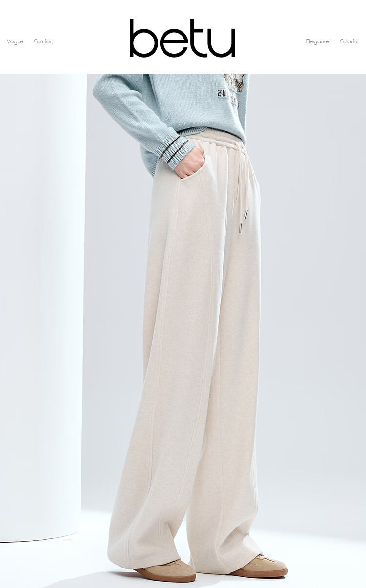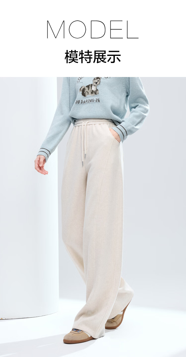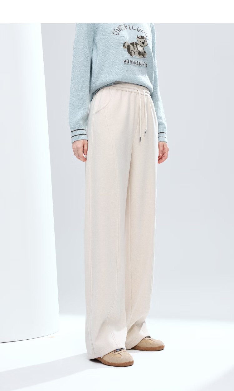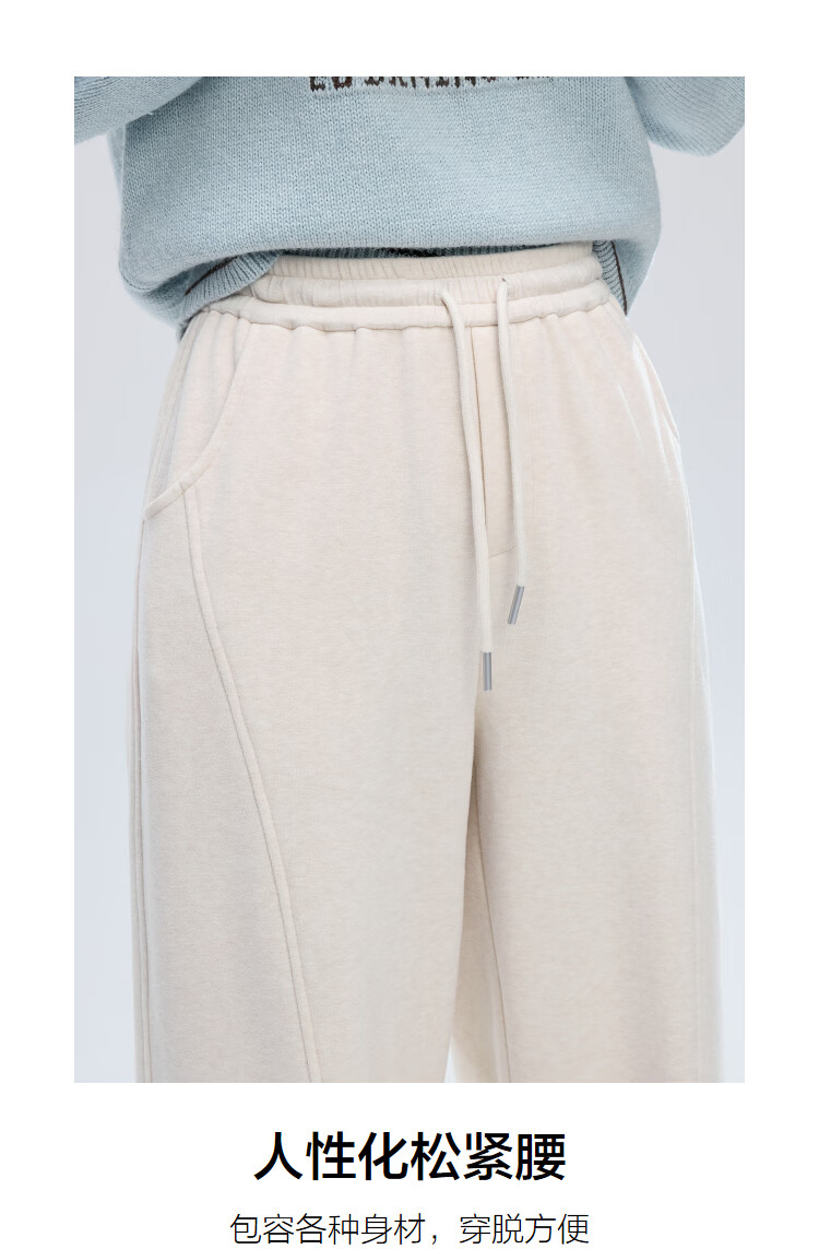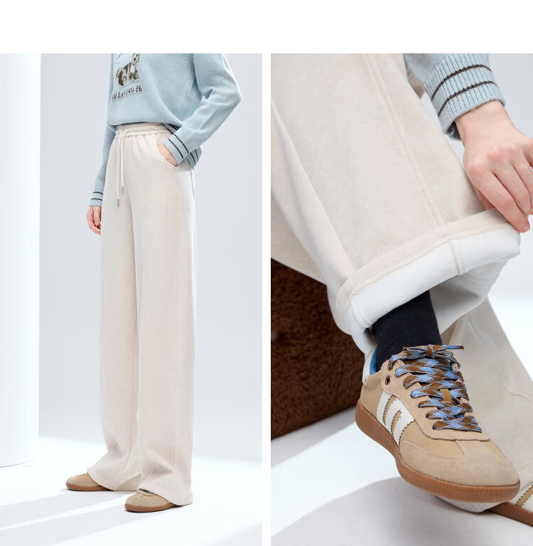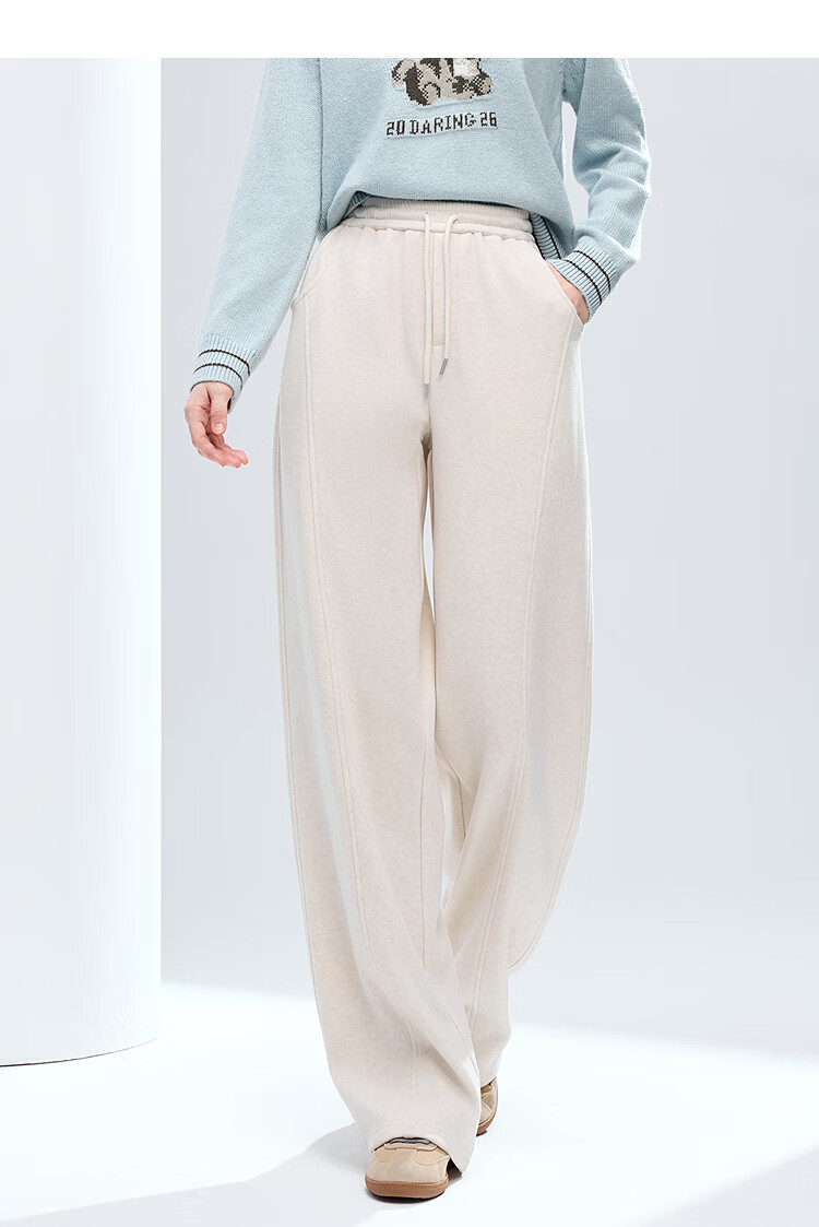 百图(betu)女装2025年冬季新款休闲阔腿裤显瘦宽松弯刀裤磨毛裤子女2511X04 杏色 S