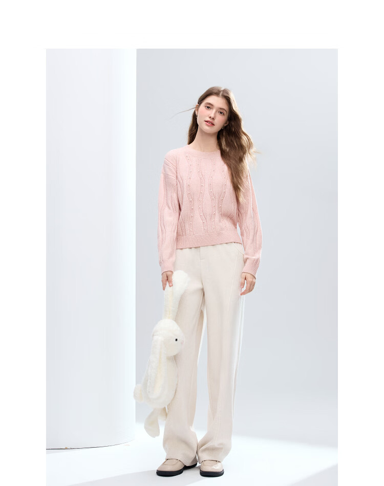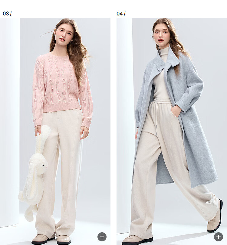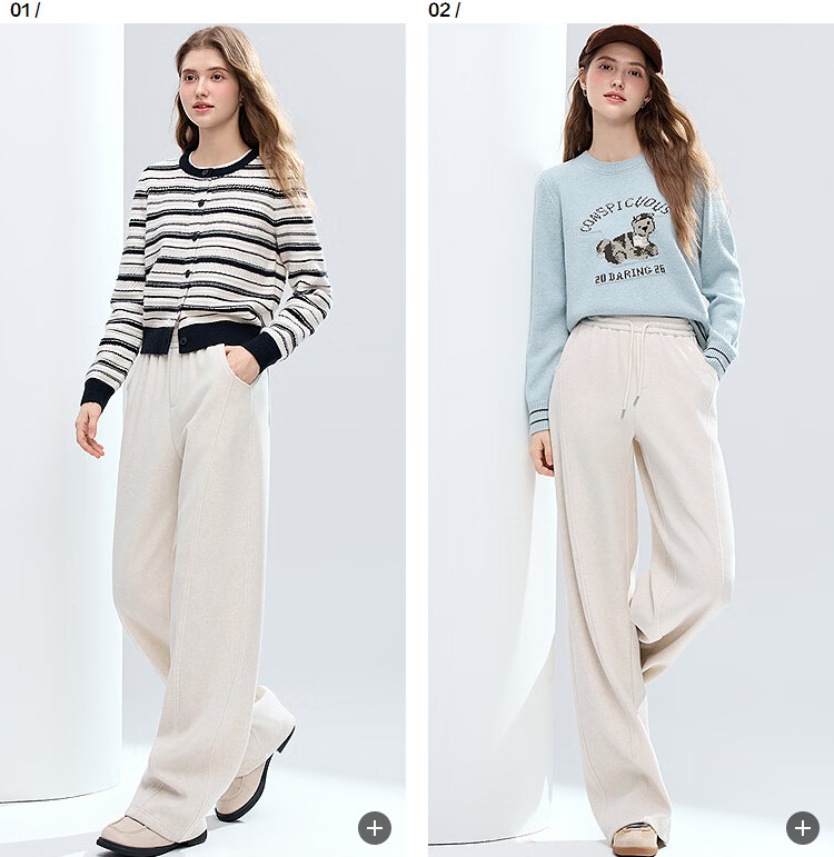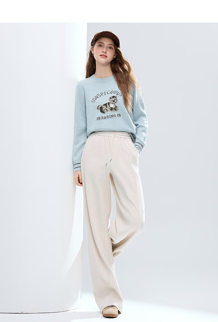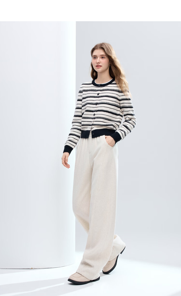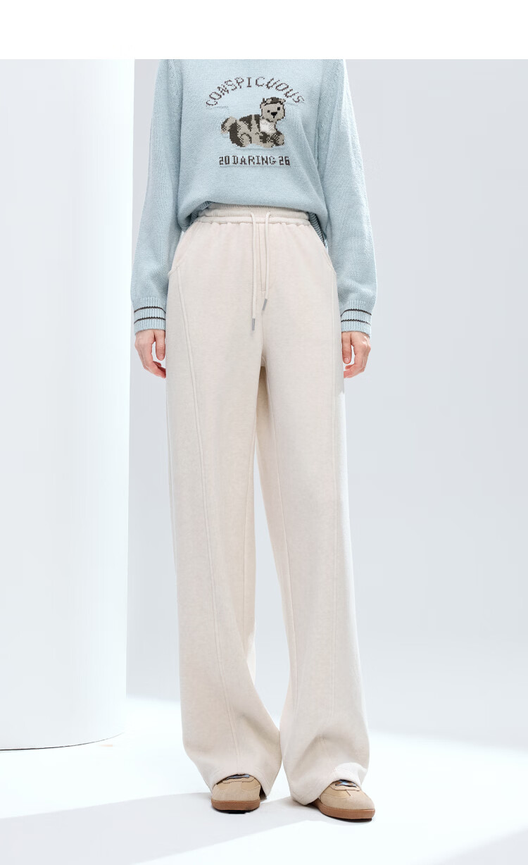 百图(betu)女装2025年冬季新款休闲阔腿裤显瘦宽松弯刀裤磨毛裤子女2511X04 杏色 S