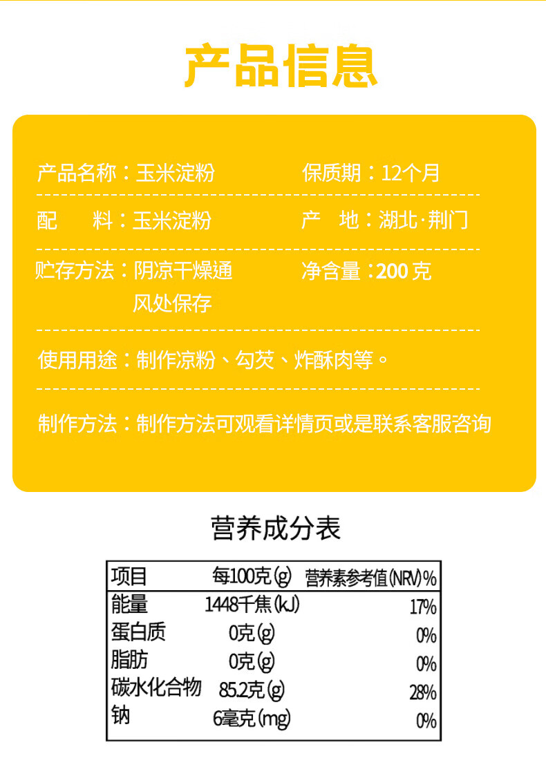 玉米淀粉食用勾芡做泥烘焙雪媚娘生粉家用玉米粉蛋糕用 100g