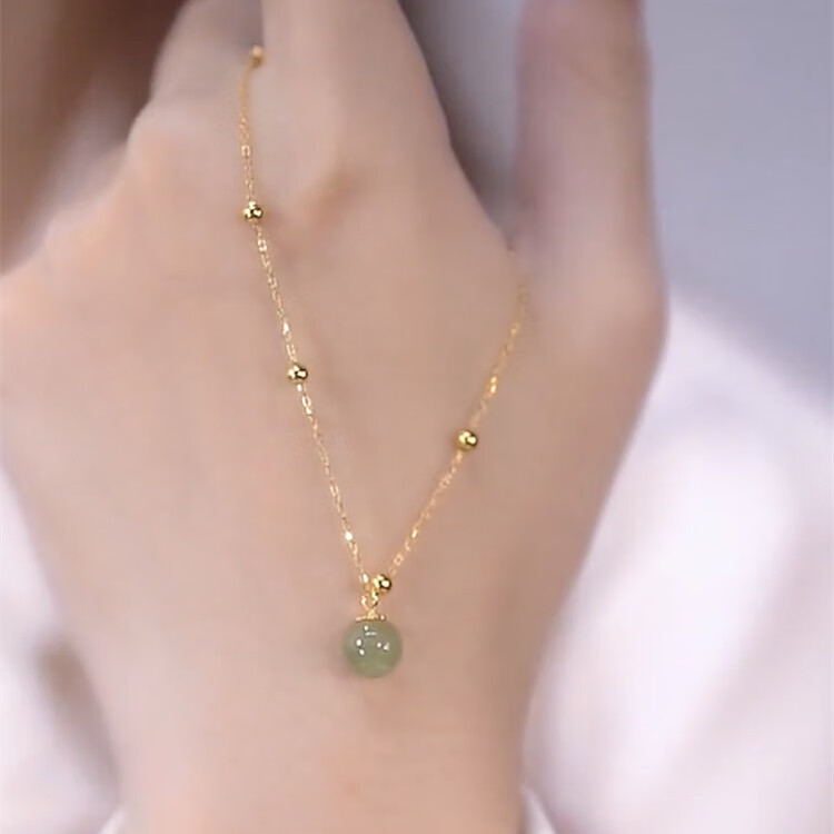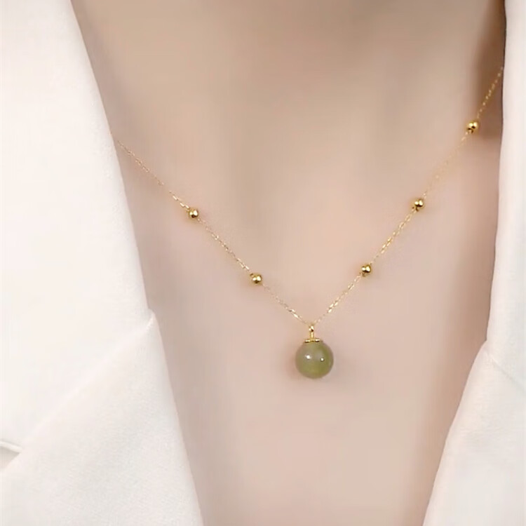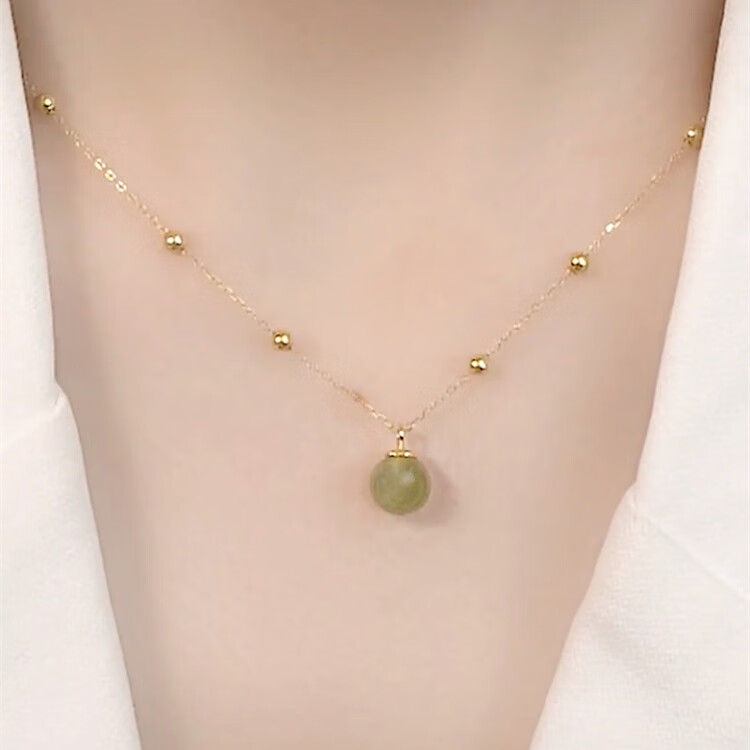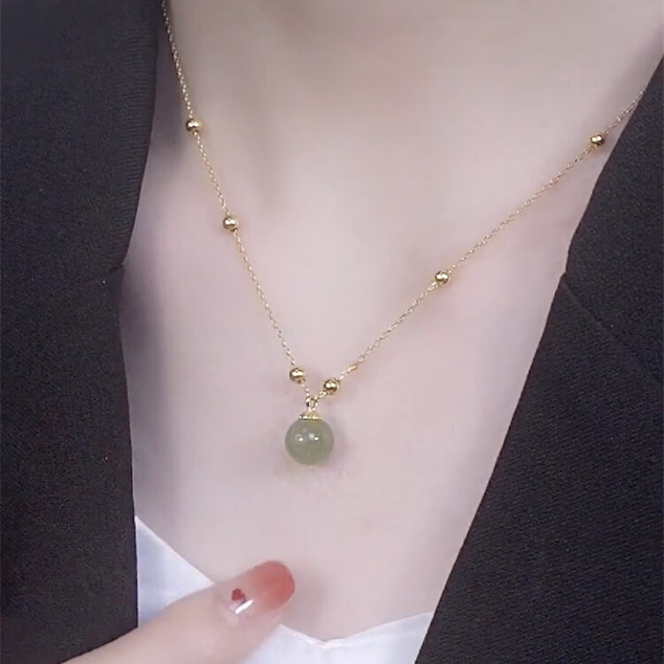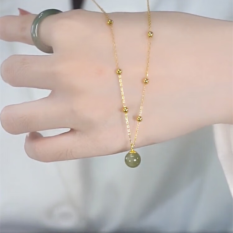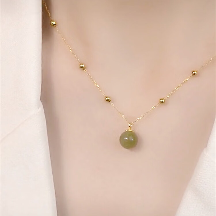 恒久叶和田玉项链女纯银路路通圆珠轻奢小众18K金2025新款 和田玉露珠金色+简约礼盒+证书