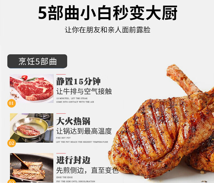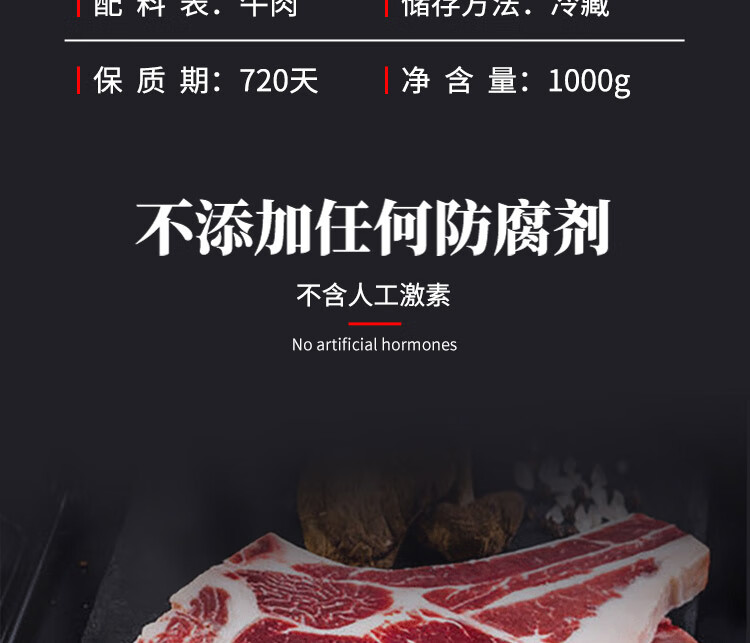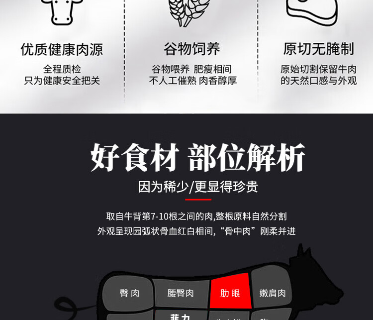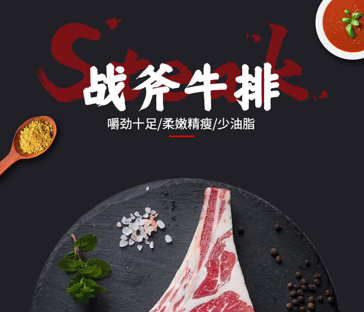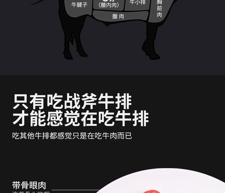 新西兰草饲PS级短战斧牛排带骨肉眼牛扒原切牛肉4片共1kg非腌制