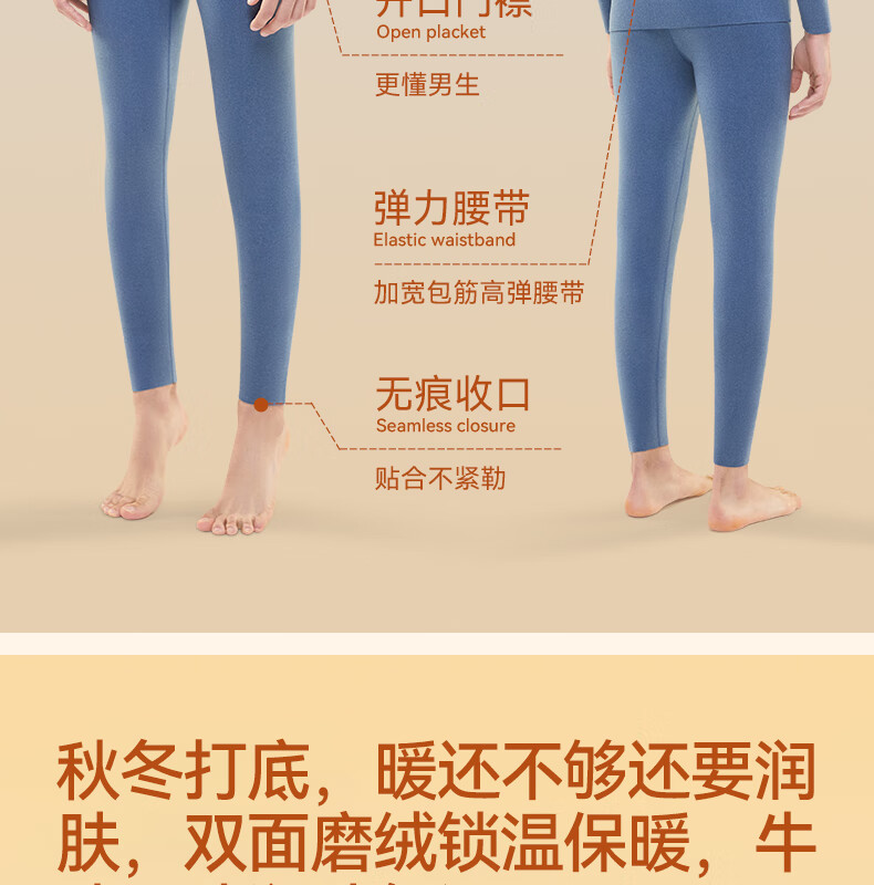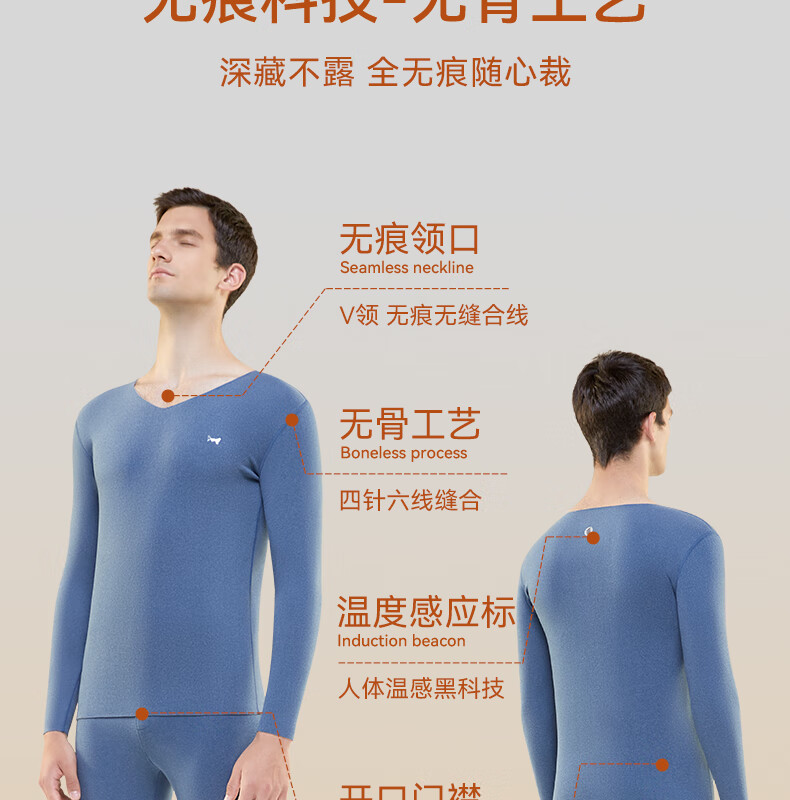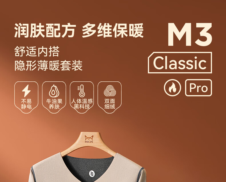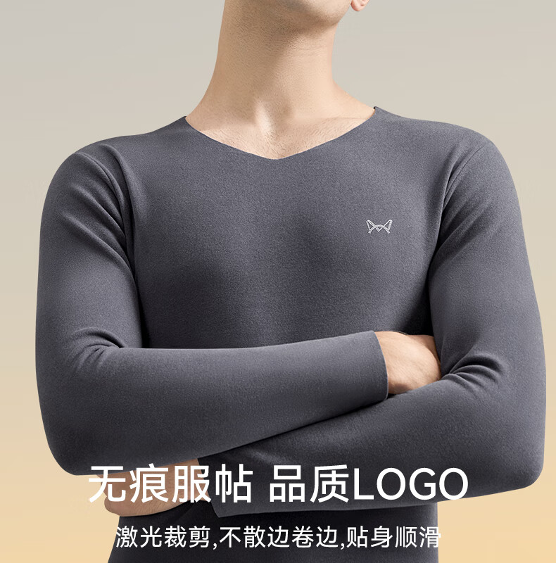 猫人(MiiOW)男士无痕保暖内衣男厚款双面热力绒润肤打底男款秋衣秋裤套装 黑色【羊绒蛋白+无痕磨绒】 XL 【建议重120-140斤】
