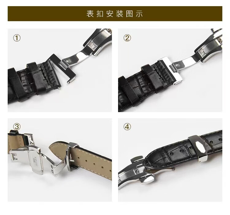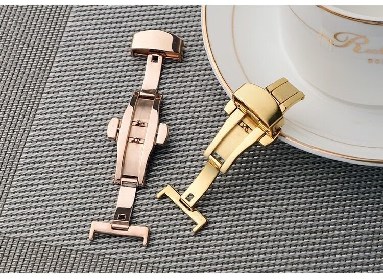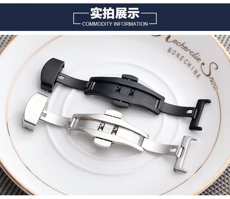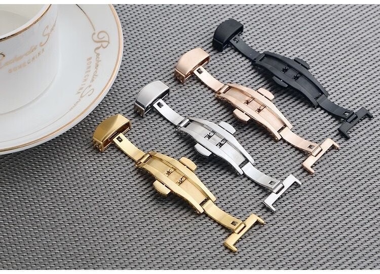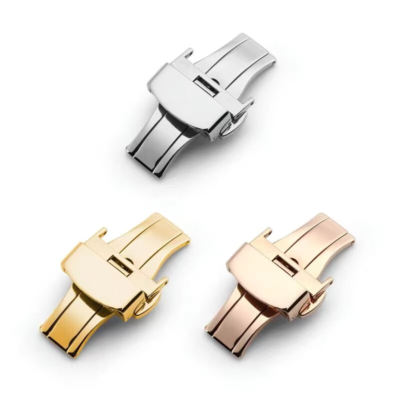 碧允表带蝴蝶扣男士表扣不锈钢双按自动折叠扣平口手表带扣配件 亮色蝴蝶扣//皮表带专用 10mm