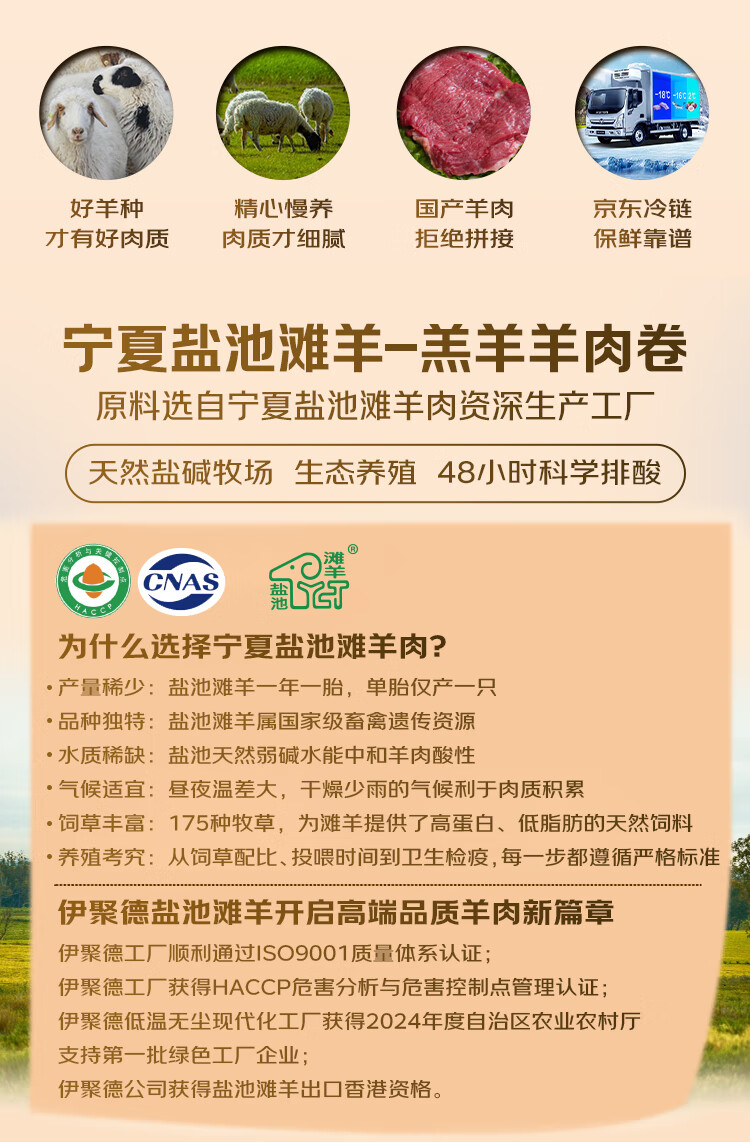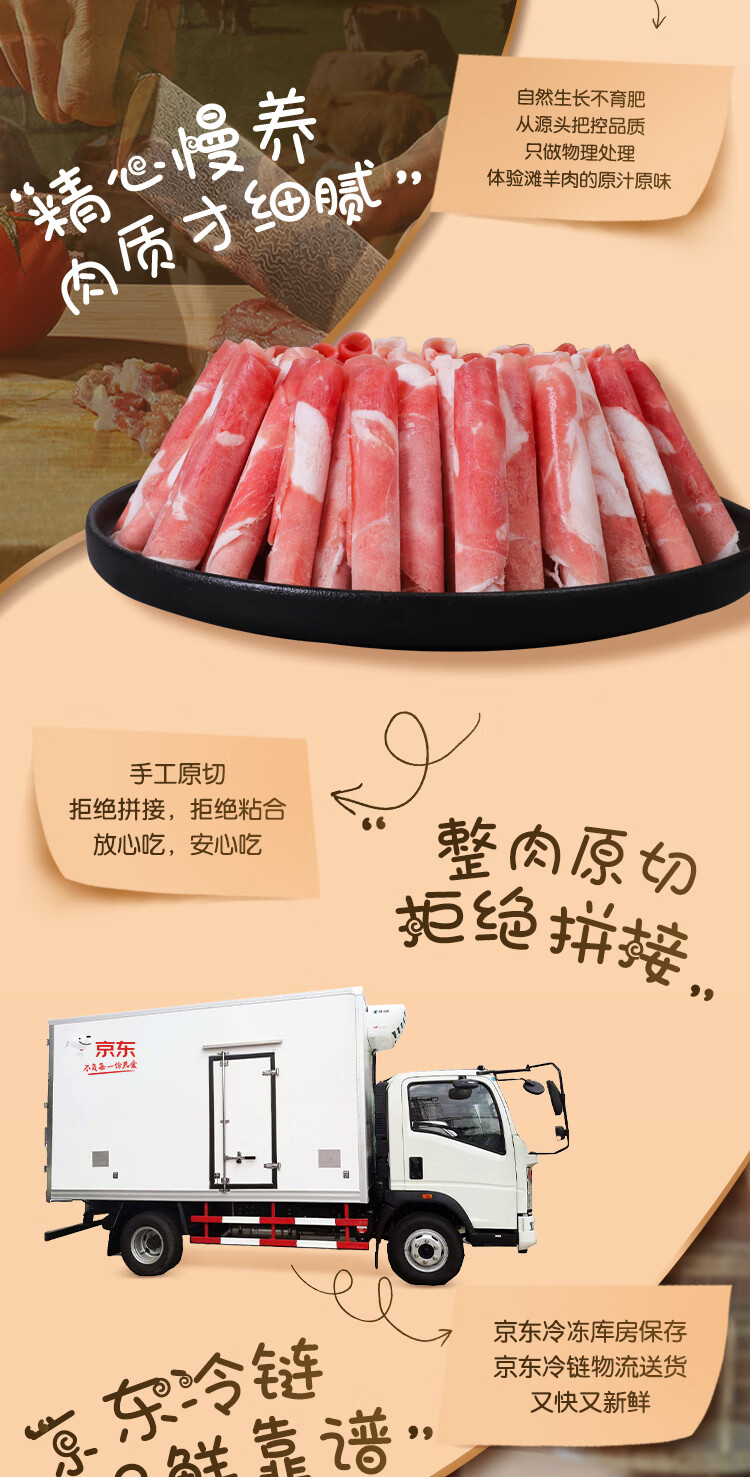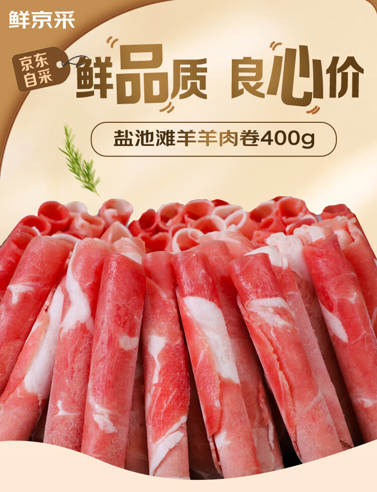 鲜京采宁夏盐池滩羊 羊肉卷原切400g 生鲜冷冻羔羊肉火锅搭配食材