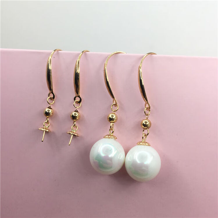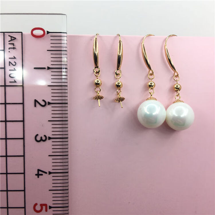 百秋嘉纯G金小叶片耳勾耳环空托蜜蜡碧玉珍珠耳坠配件珠间隔 薄款耳钩纯-白一对