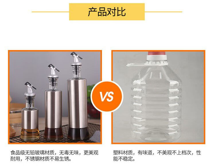 溥畔厨房调料瓶套装饭店家用装醋容器香油瓶醋壶玻璃装油罐不锈钢油瓶 升级加大加厚310ML不锈钢油瓶1只送防水标签+漏斗