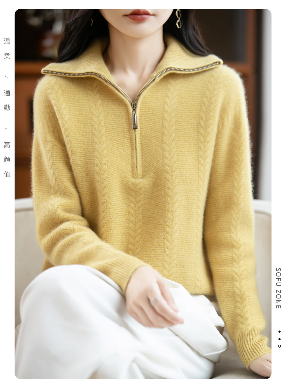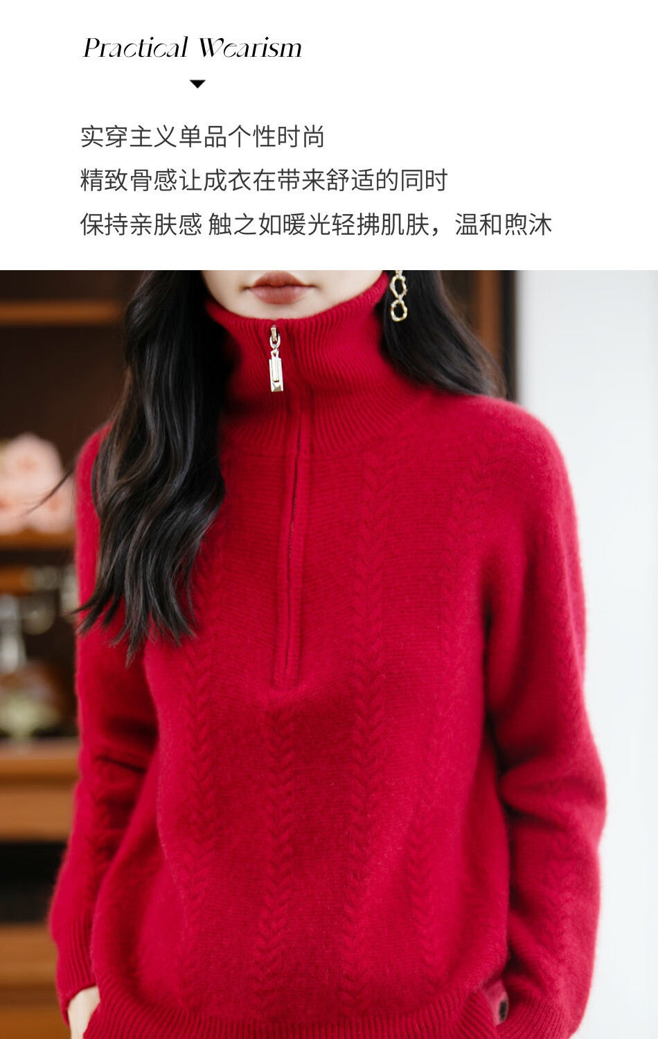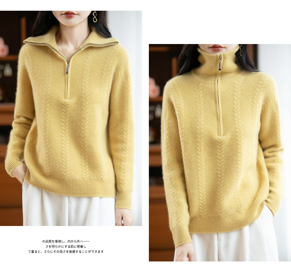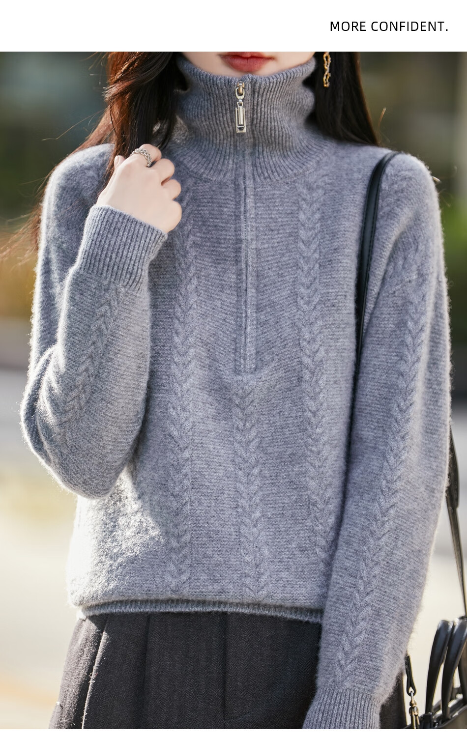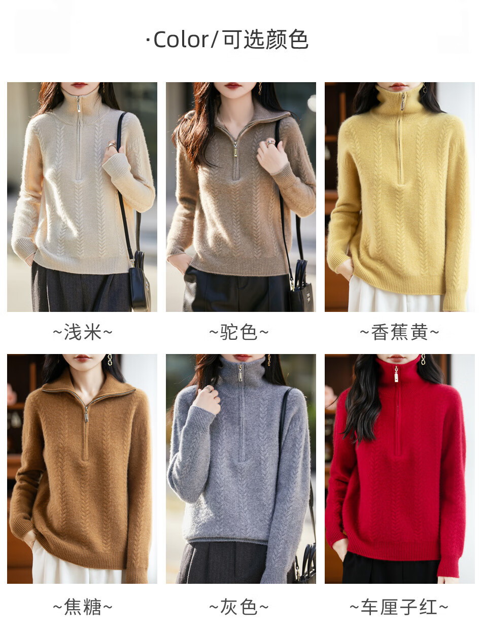 2025七针加厚纯羊毛衫女式高翻领毛衣秋冬新款宽松慵懒风提花内搭 浅米 L