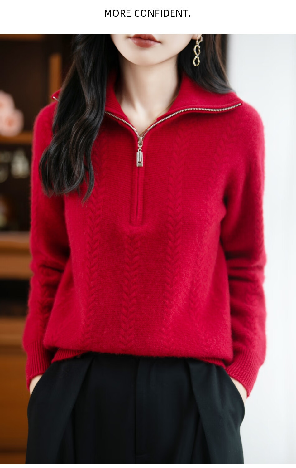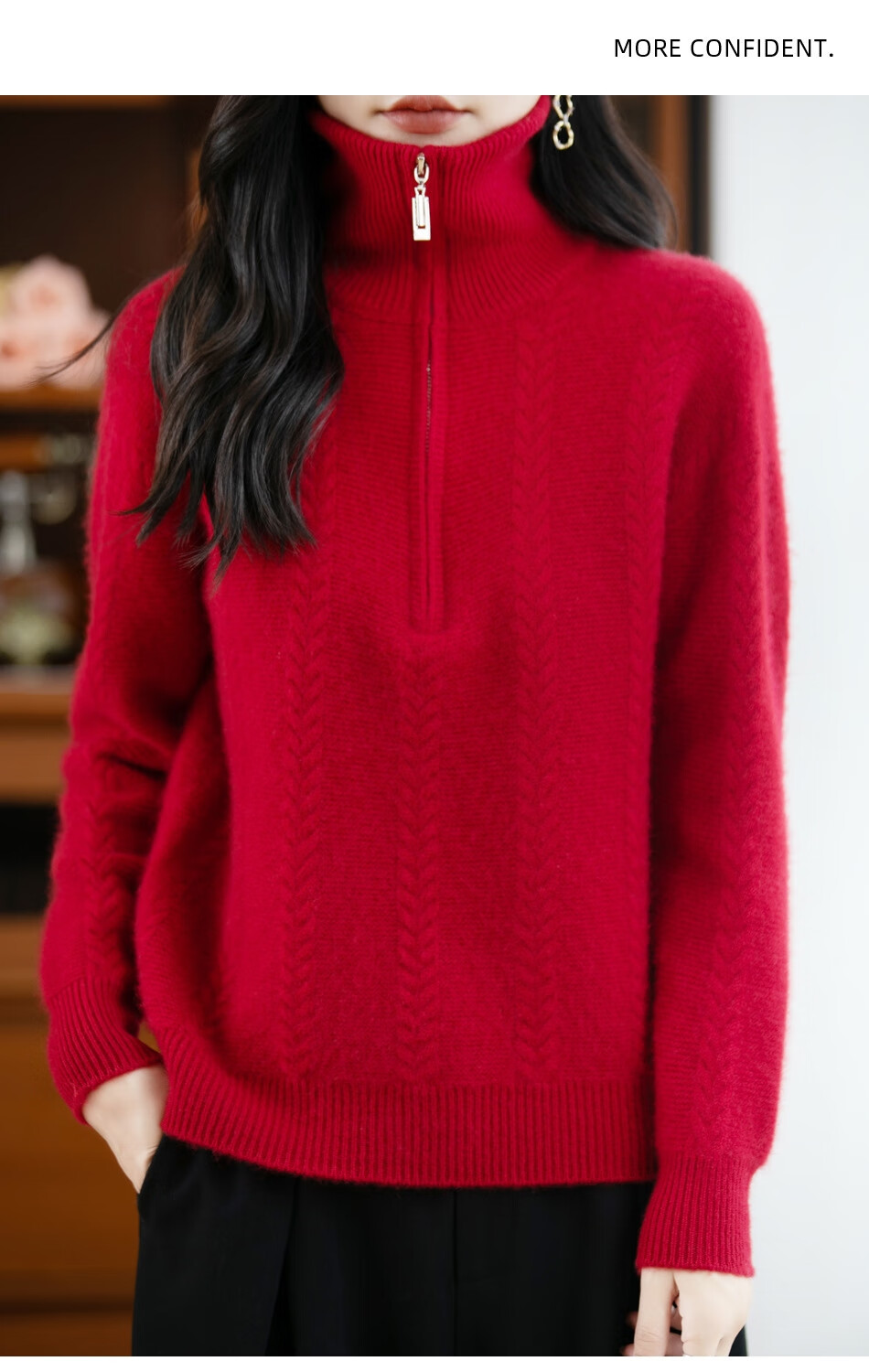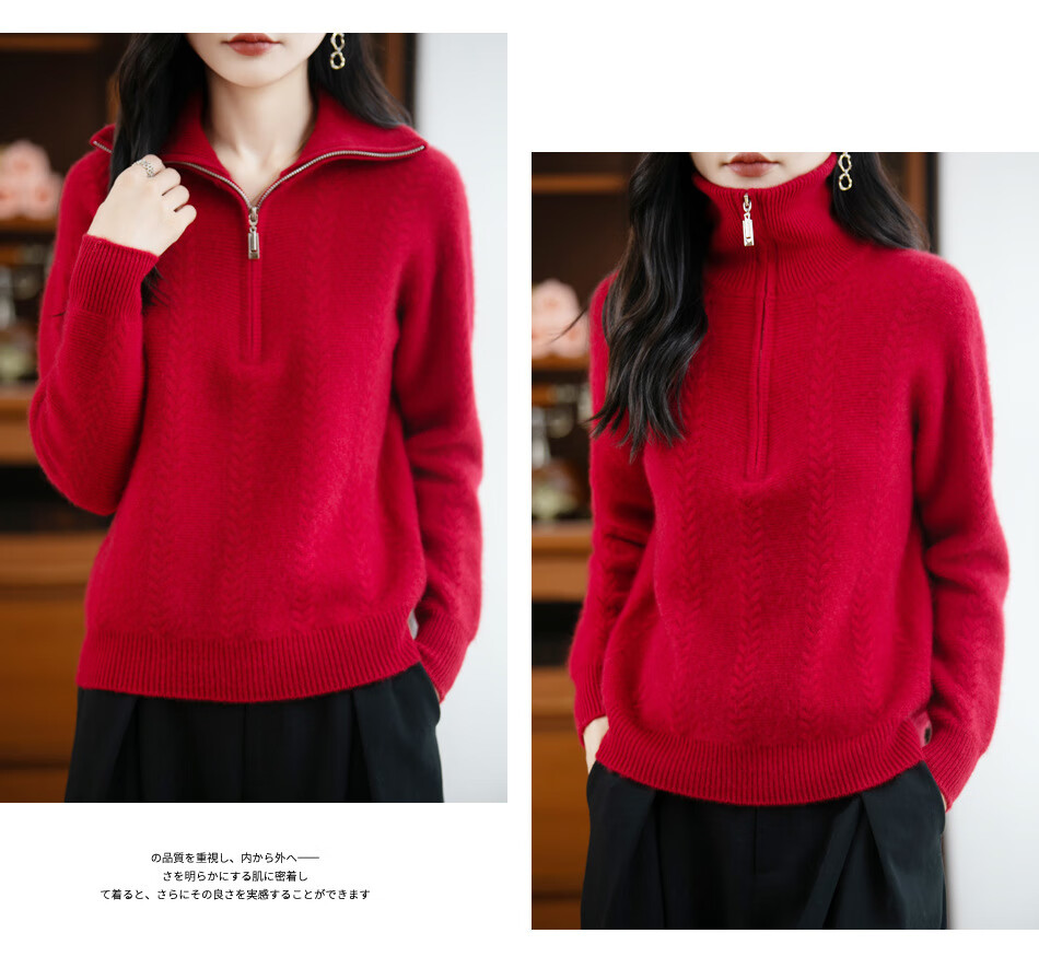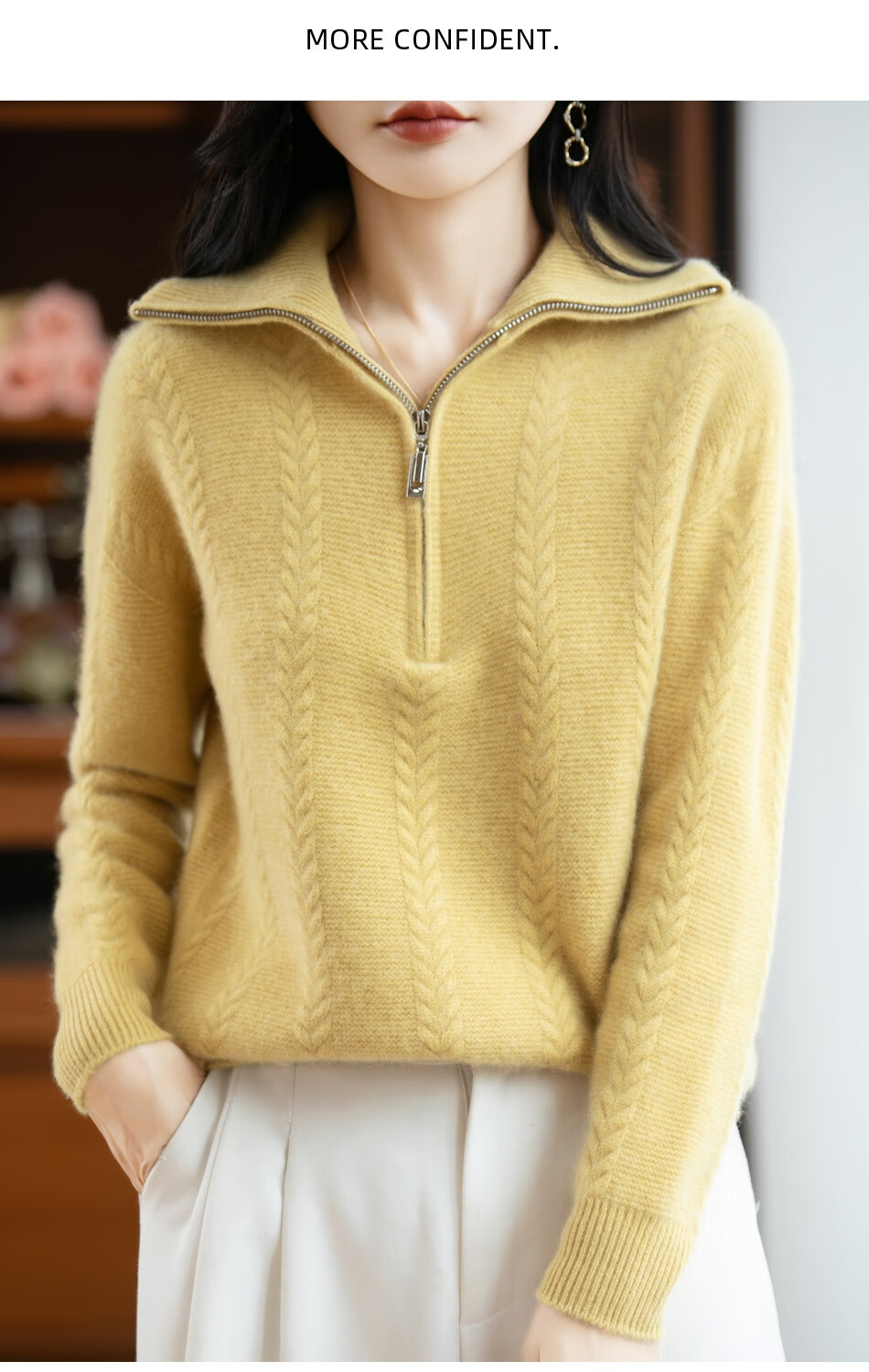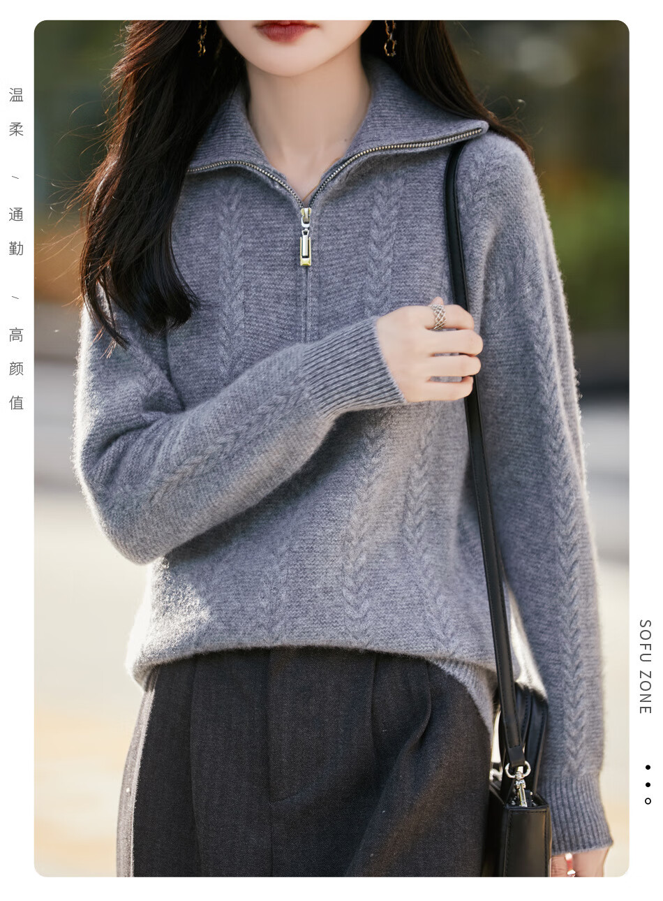 2025七针加厚纯羊毛衫女式高翻领毛衣秋冬新款宽松慵懒风提花内搭 浅米 L