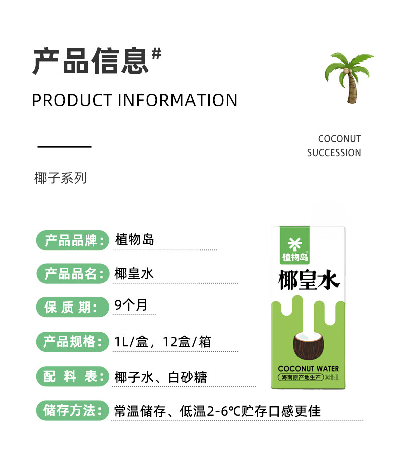 欧本植物岛 椰皇水1L 海南原产新鲜椰子水椰汁天然电解质饮料老椰 椰皇水1L装