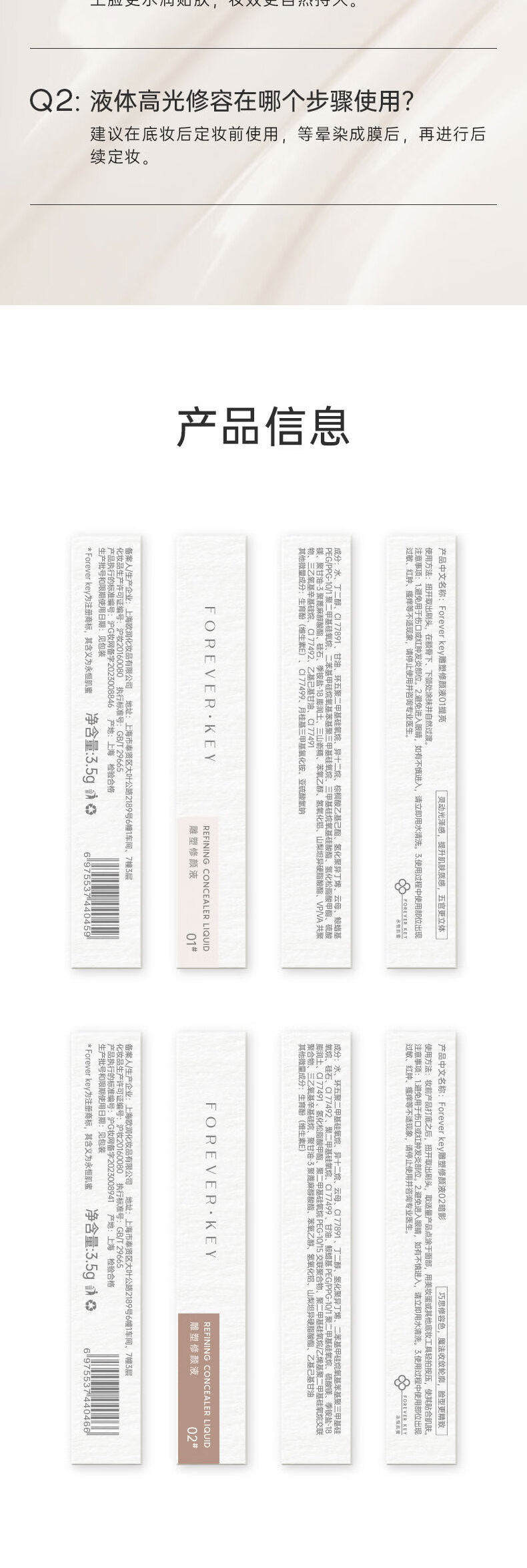 FOREVER·KEY修容液体修容棒鼻影阴影高光侧影提亮液暗笔送女友礼物 01#提亮色