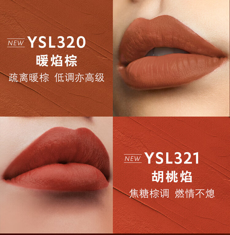 YSL圣罗兰细管纯口红 1966 红棕色哑光小金条2.2g 新年礼物送女友