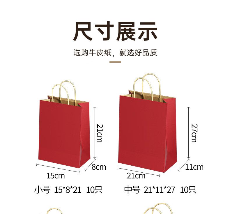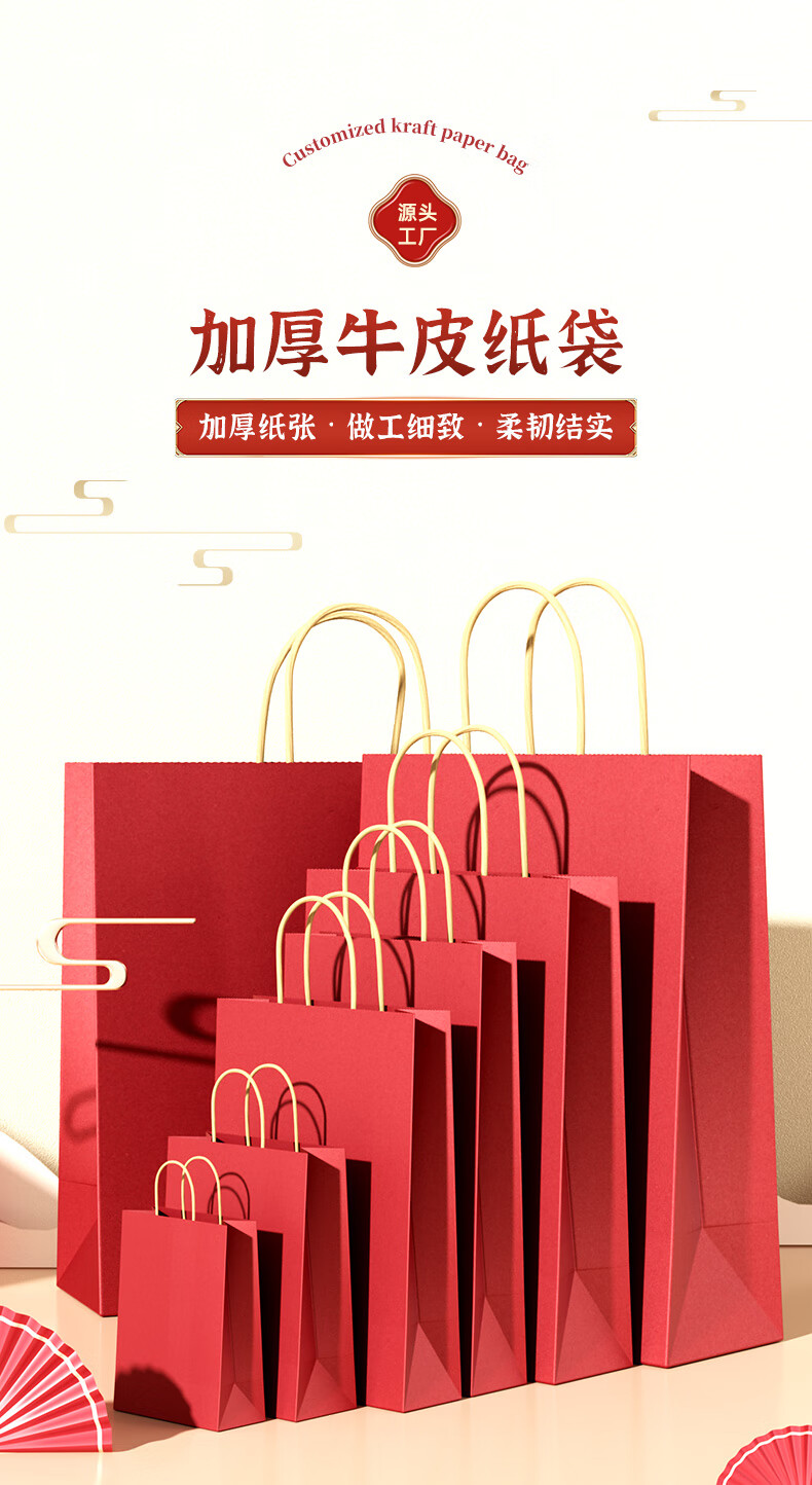 登比红色牛皮纸袋礼品袋手提包装袋子打包袋结婚伴手礼盒袋新年礼物