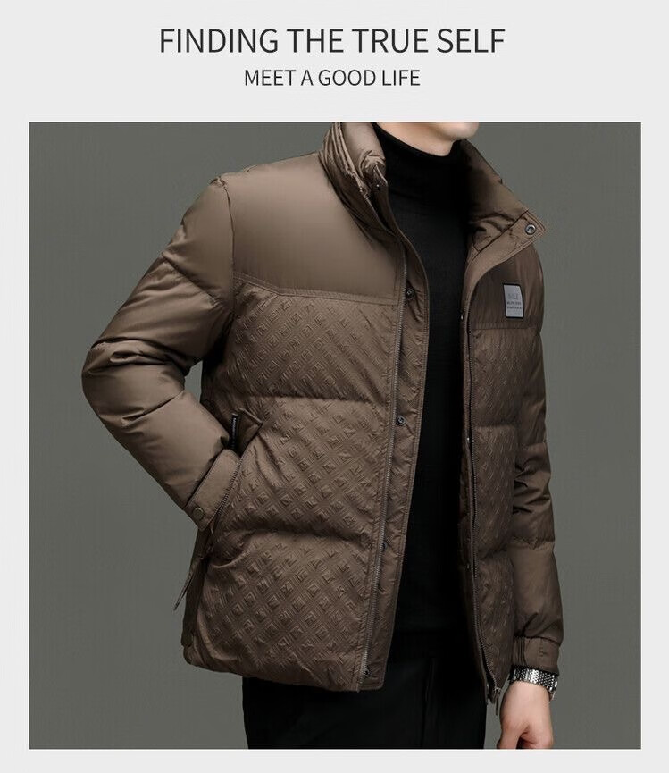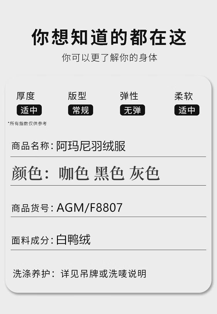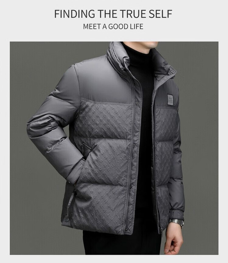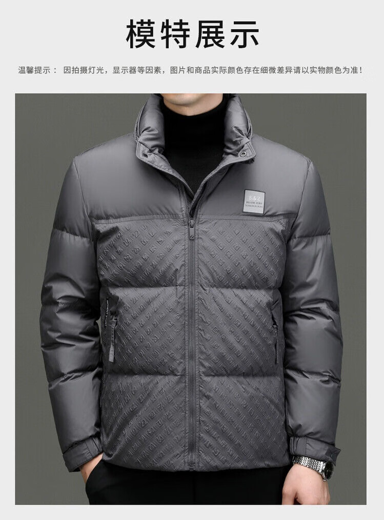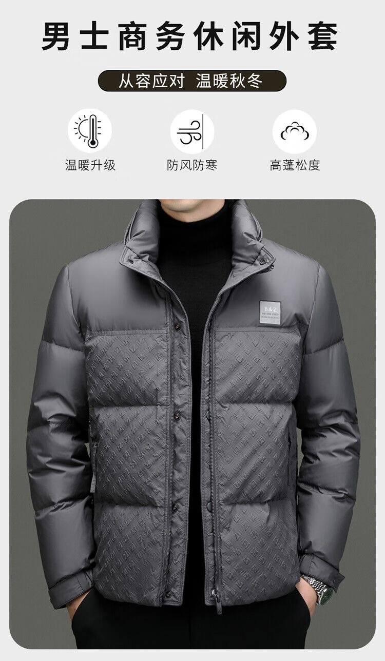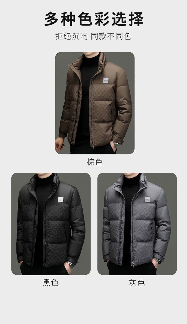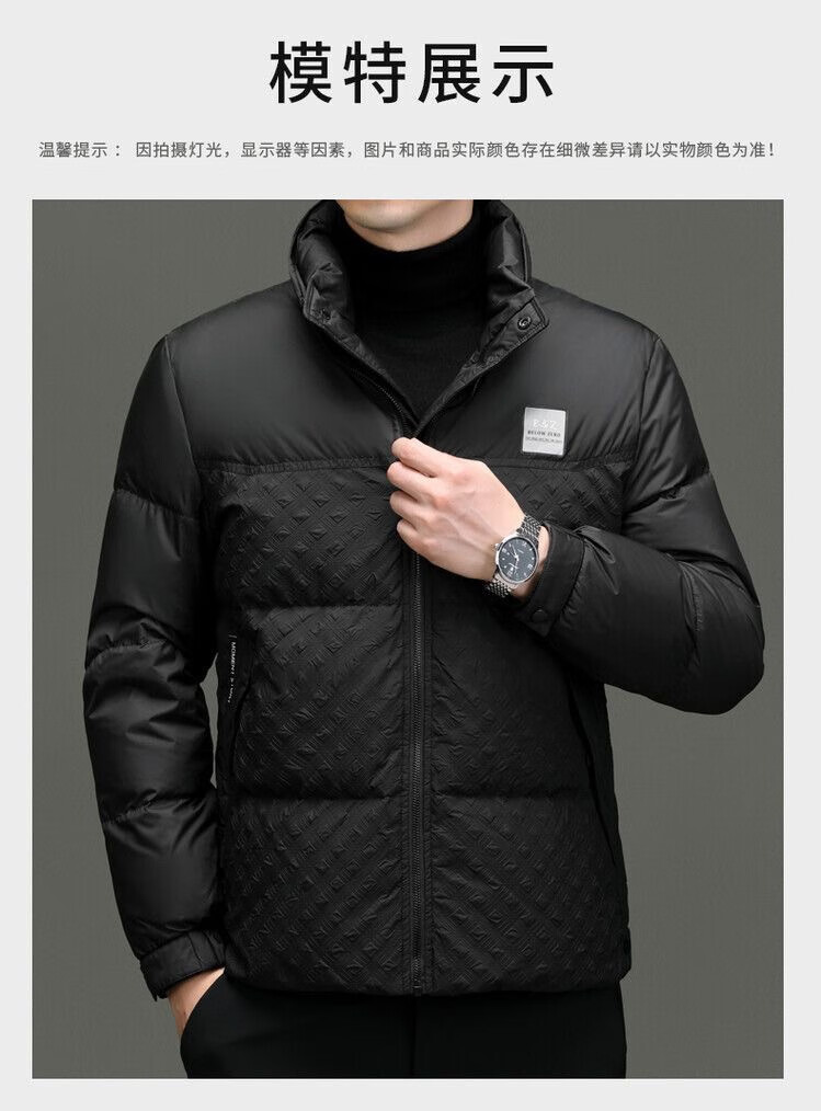 阿玛尼 阿玛尼男士羽绒服秋冬季中青年休闲短款立领白鸭绒保暖外套 AGM8807黑色 S 165/84A