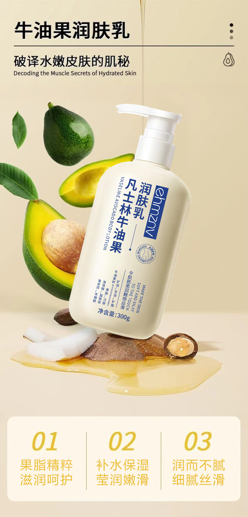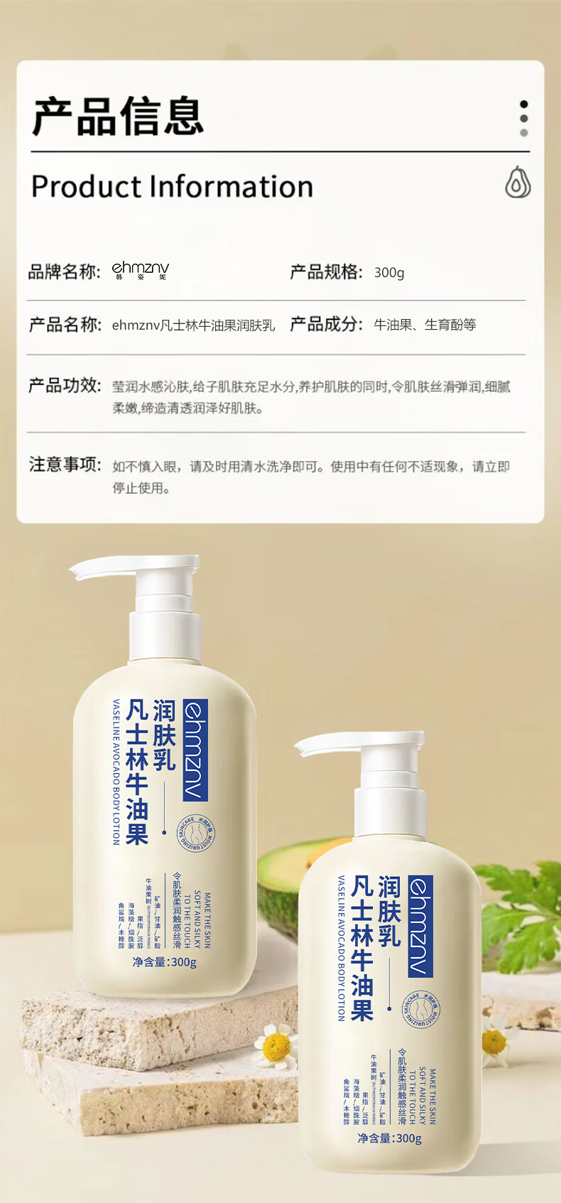 韩姿妮凡士林牛油果身体乳皮肤干燥补水保湿滋润润肤乳护手霜清爽不油腻 1瓶装【牛油果润肤乳】体验装