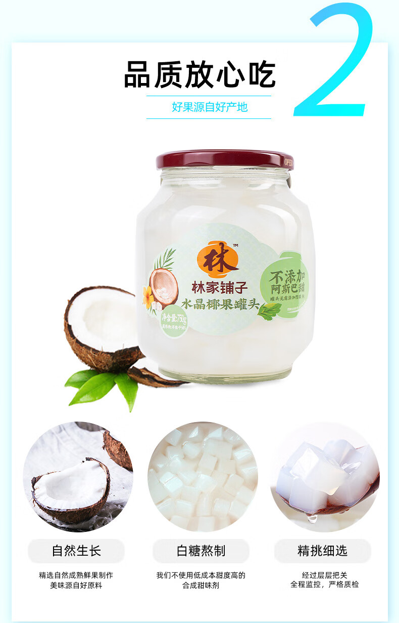 林家铺子糖水椰果罐头750g 商超同款 经典味道 【不添加阿斯巴甜】750g*2罐