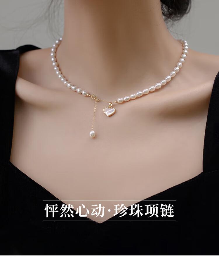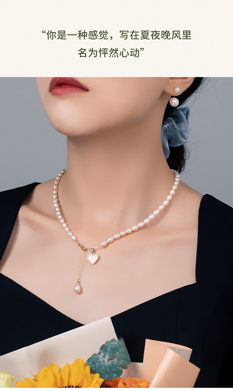 JALLOO淡水珍珠项链女士年轻款高级轻奢小众锁骨链饰品女生日礼物送女友 怦然心动淡水珍珠项链-证书
