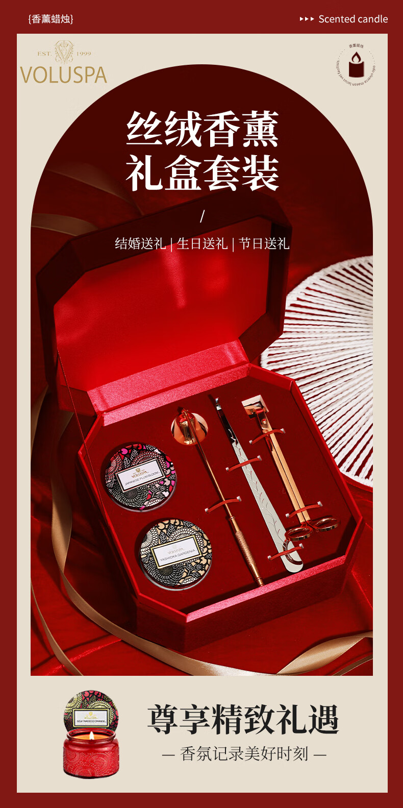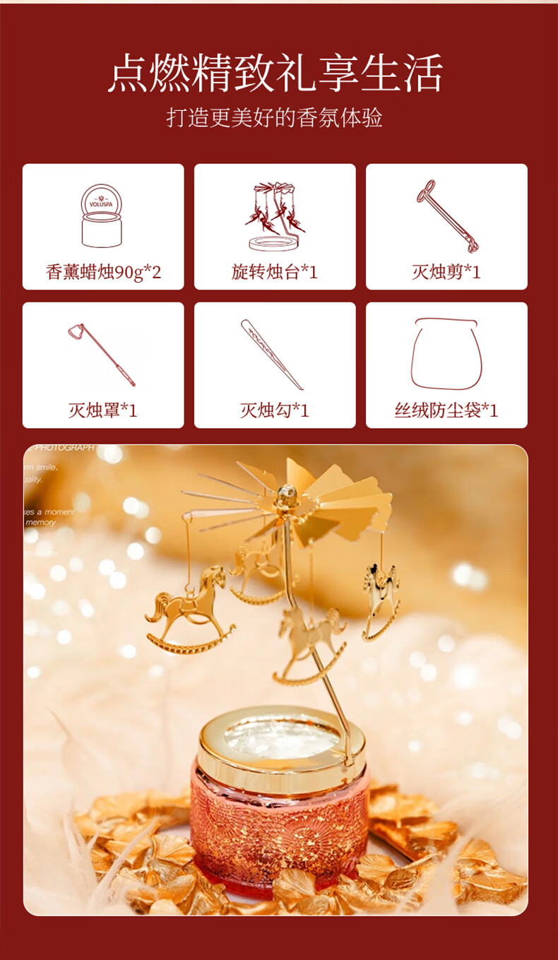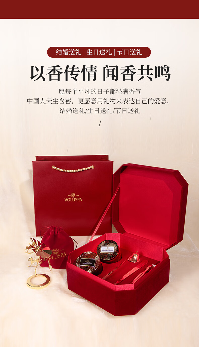 Voluspa香薰礼盒生日礼物女生闺蜜高级小众眠助蜡烛实用新婚结婚新人新年 【荔枝+琥珀】礼盒礼袋套装