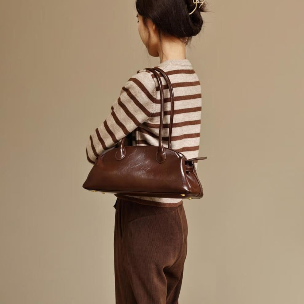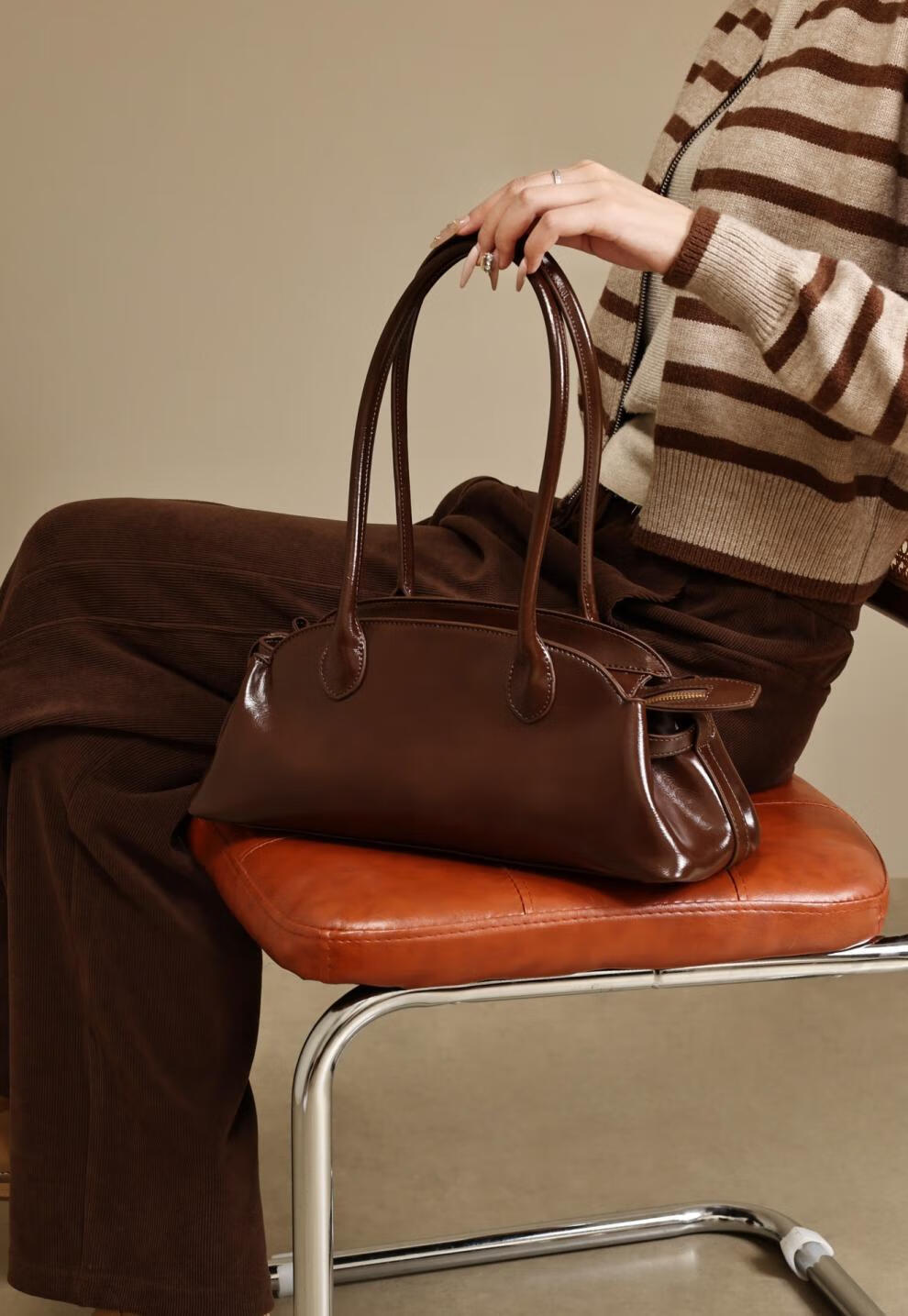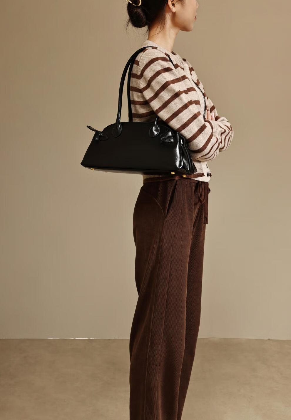 MOOLENA轻奢品牌真皮包包女包腋下包晚宴单肩包女 黑色