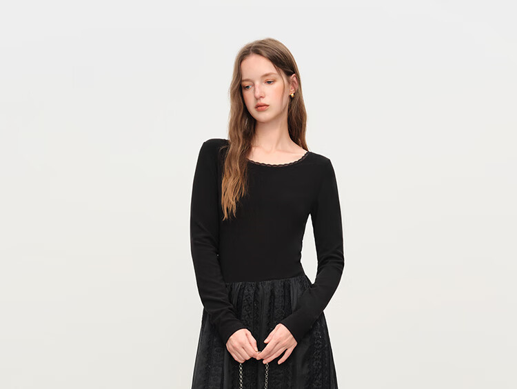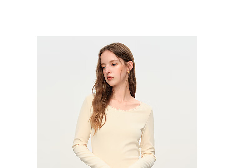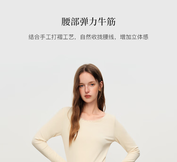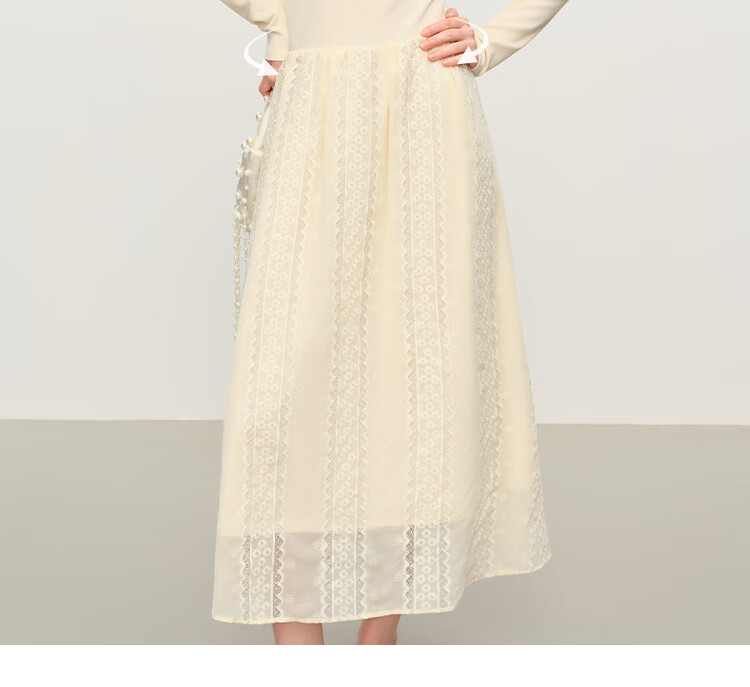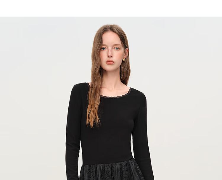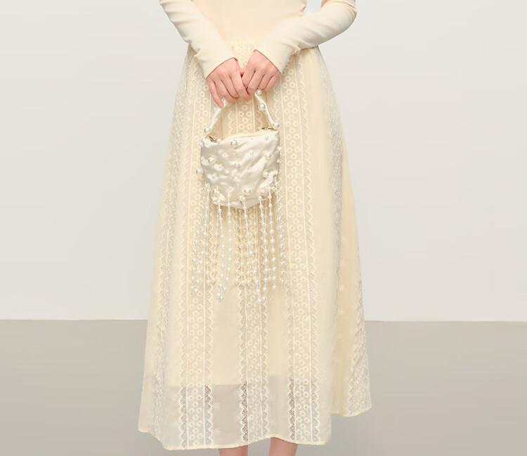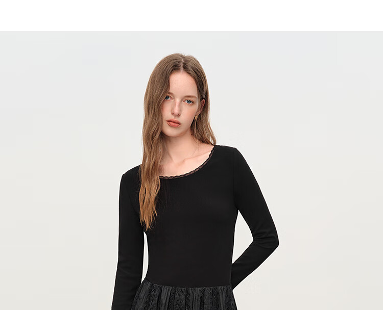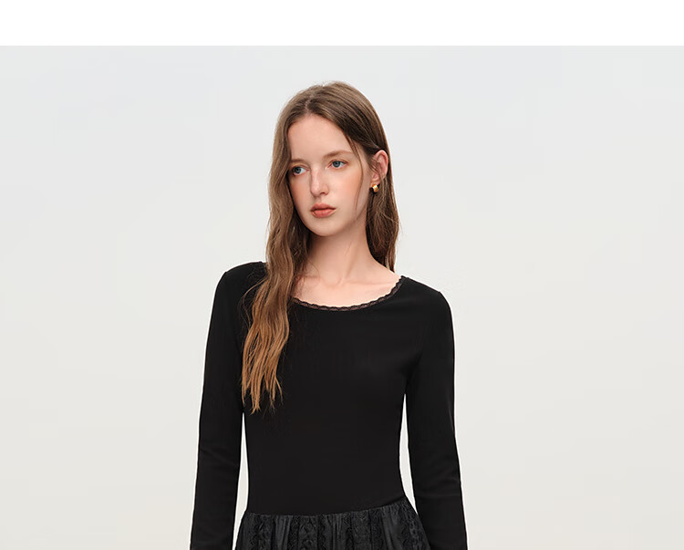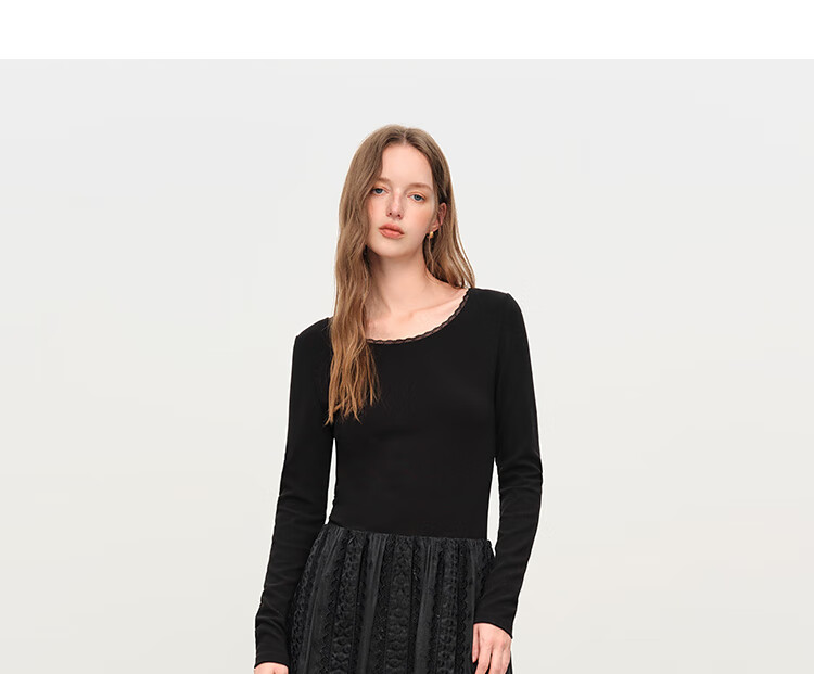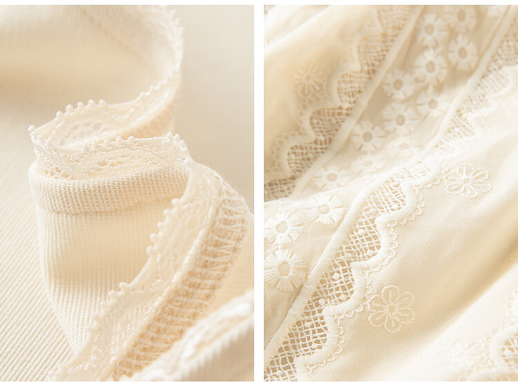 范思蓝恩法式圆领蕾丝花边长袖针织连衣裙女冬季2025新款内搭4355 杏色 L