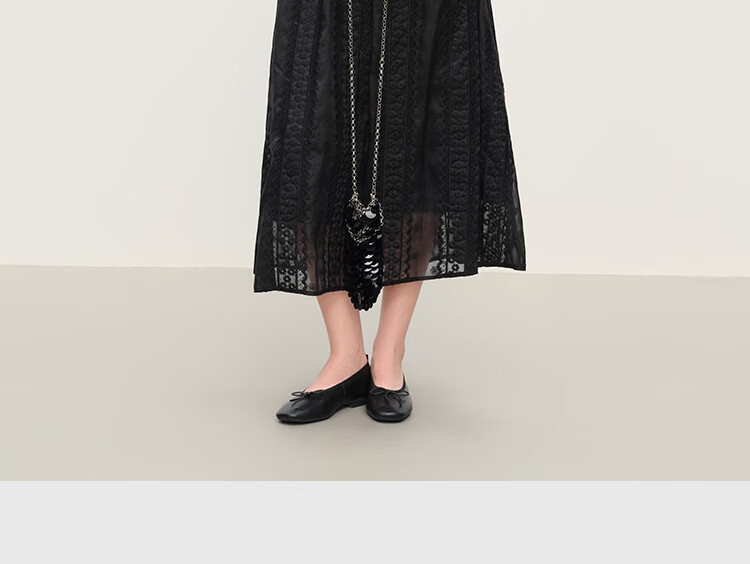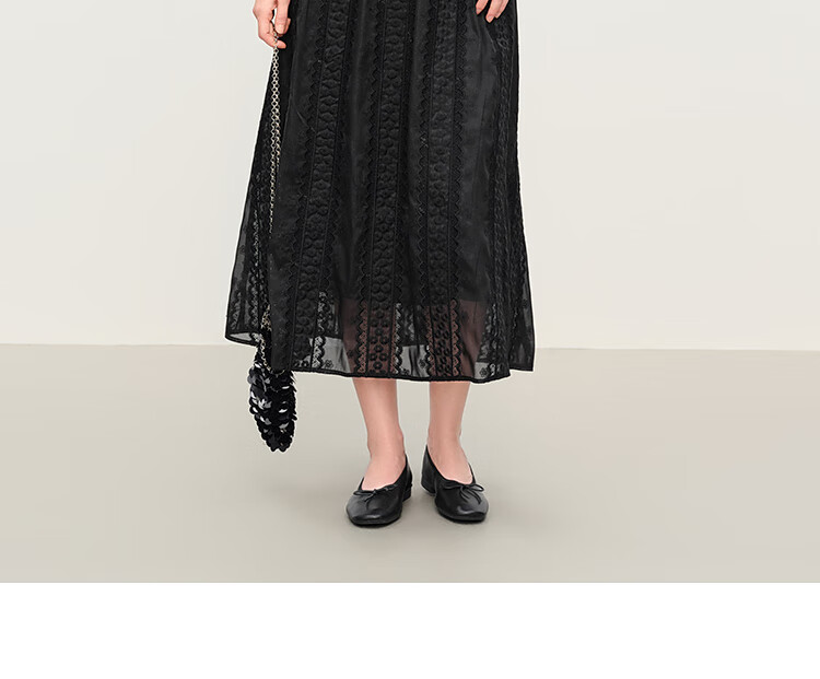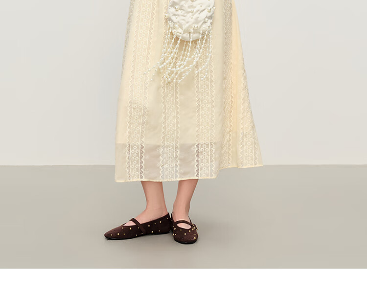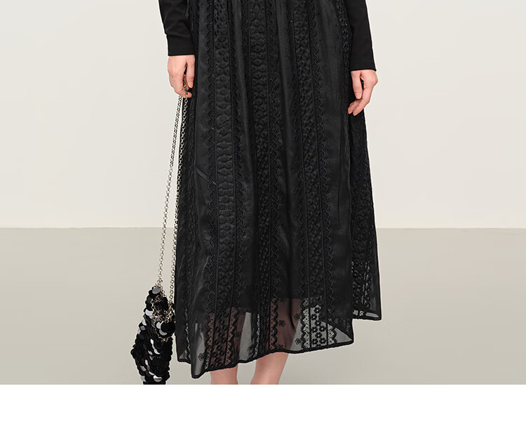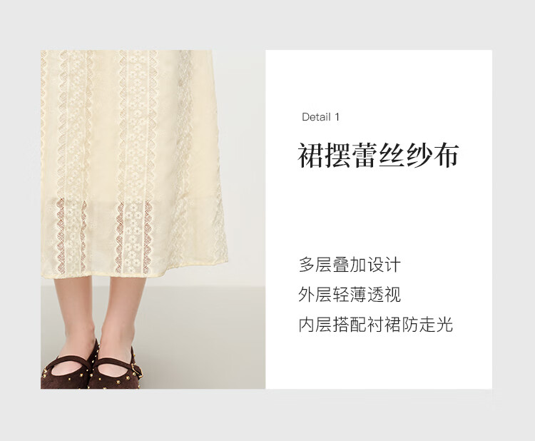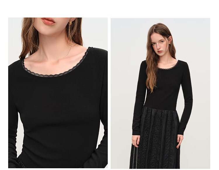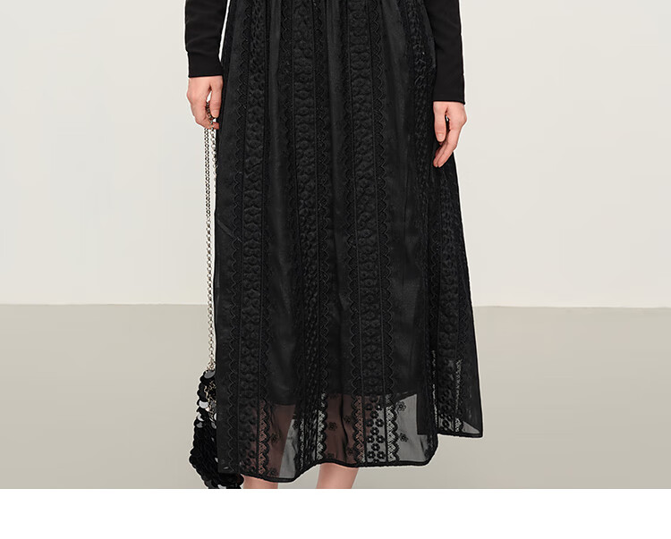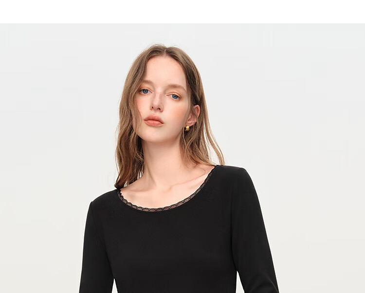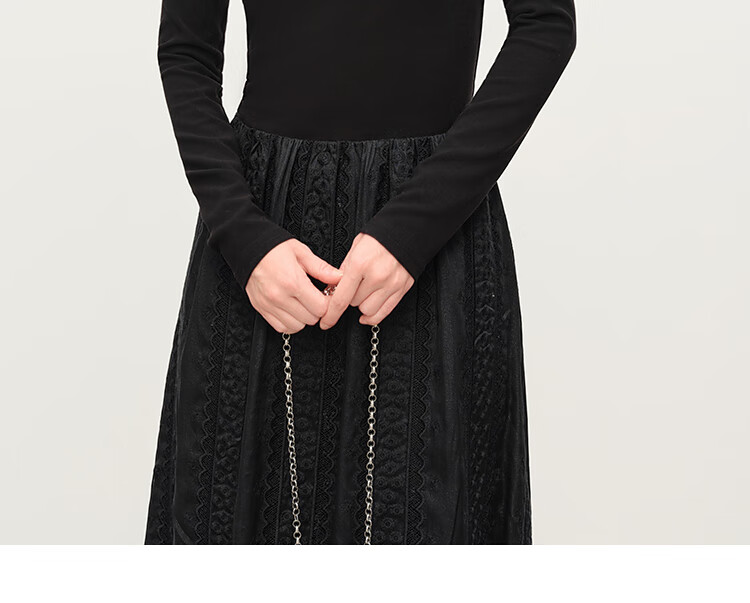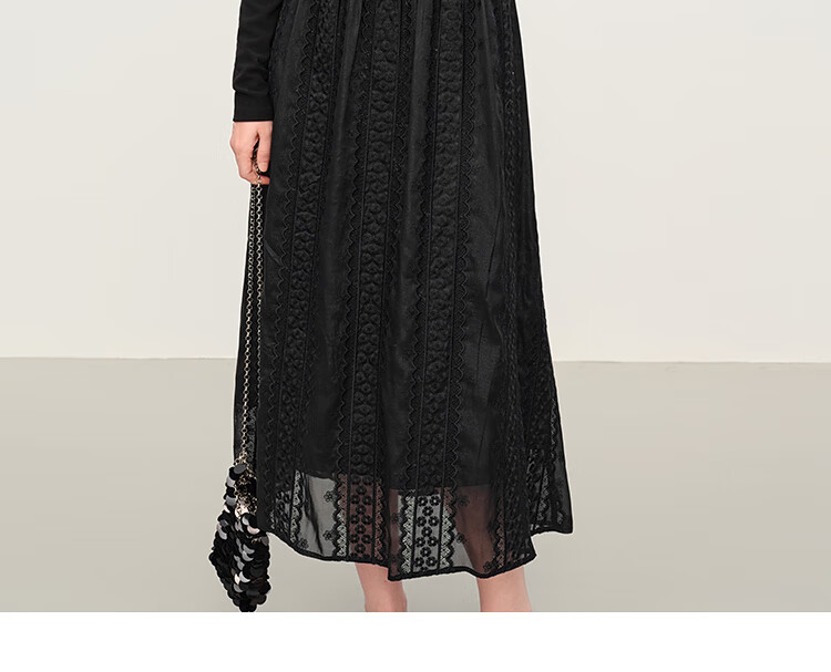 范思蓝恩法式圆领蕾丝花边长袖针织连衣裙女冬季2025新款内搭4355 杏色 L