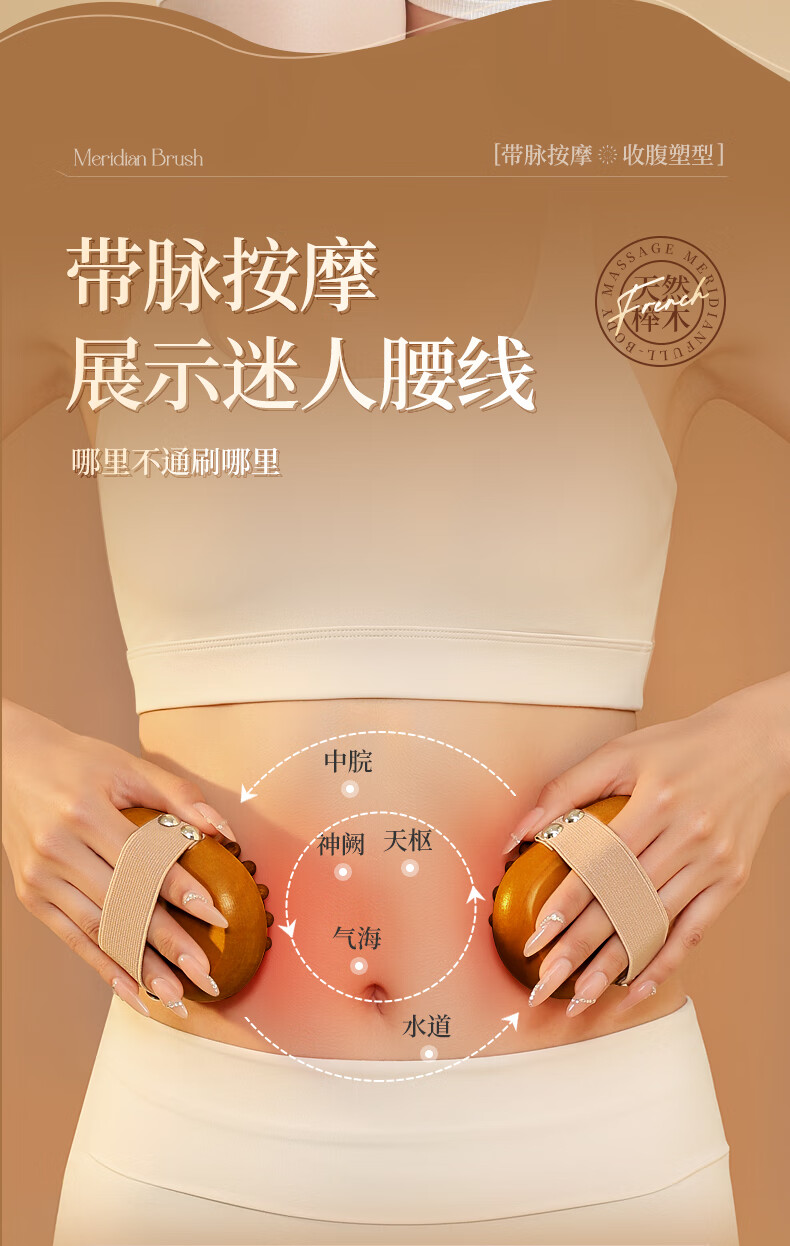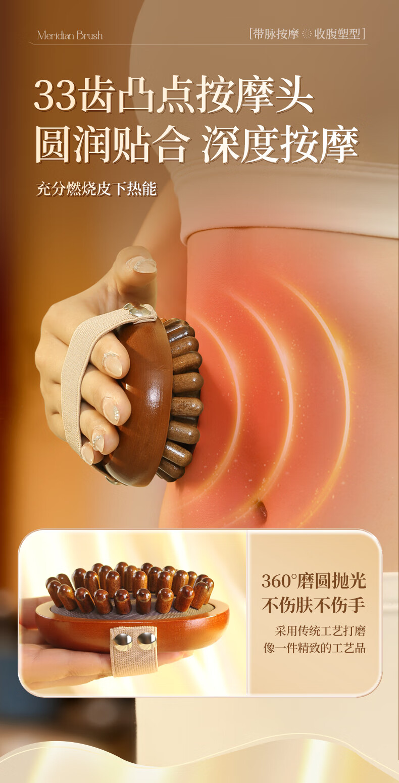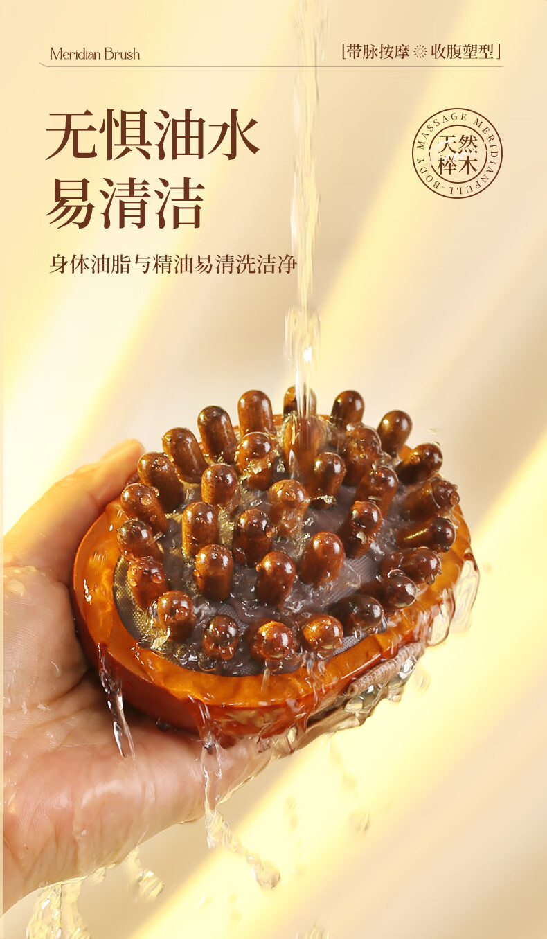 带脉经络刷全身通用按摩刷腹部刷肚子刷腹梳子按摩梳头部经络梳 棕色禾木经络刷1个+10毫升艾草精油