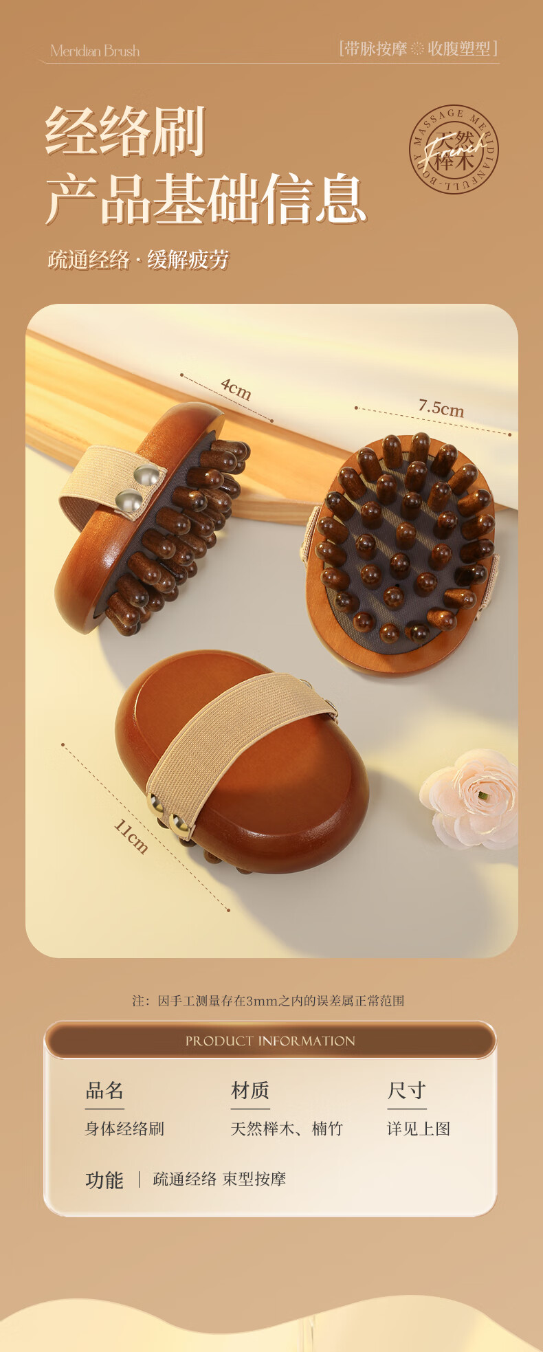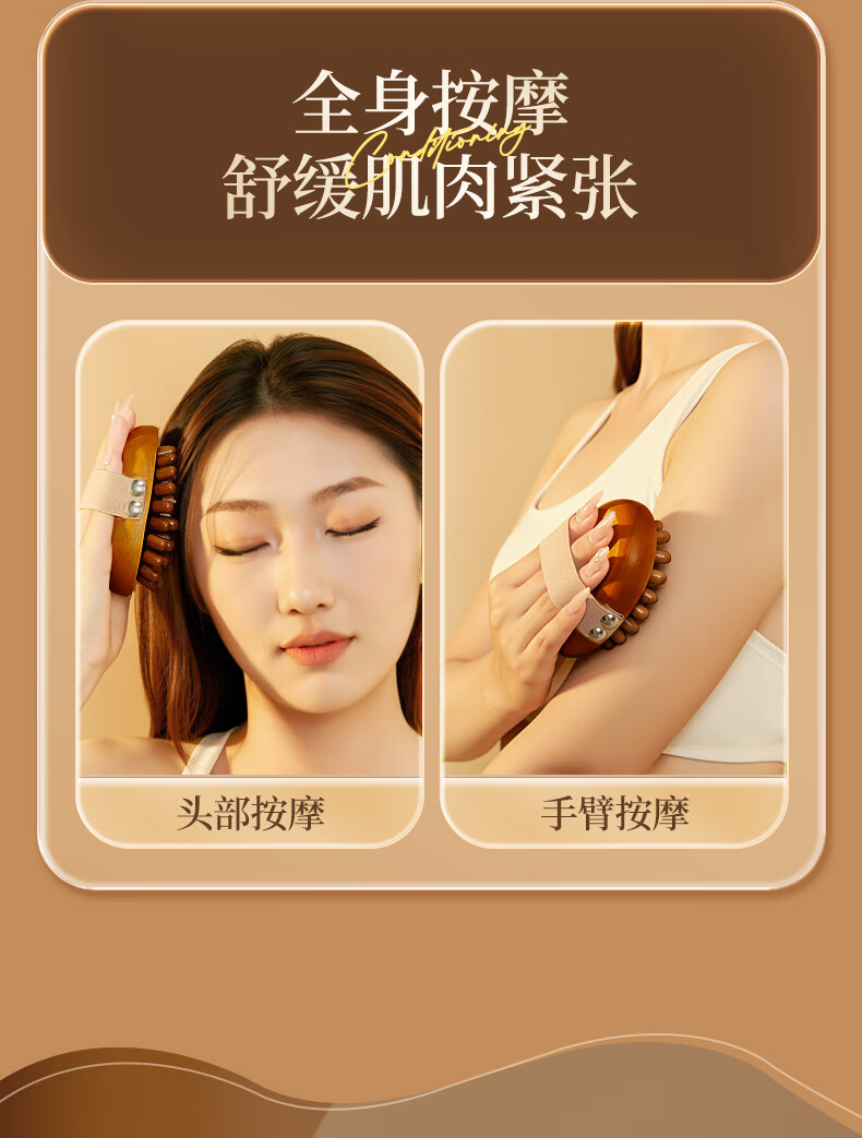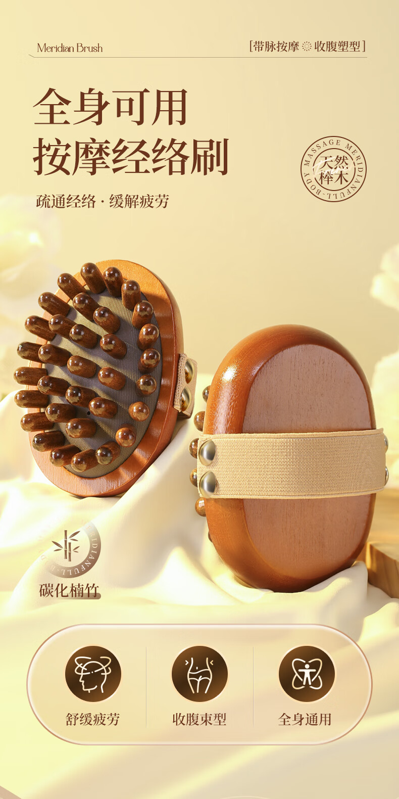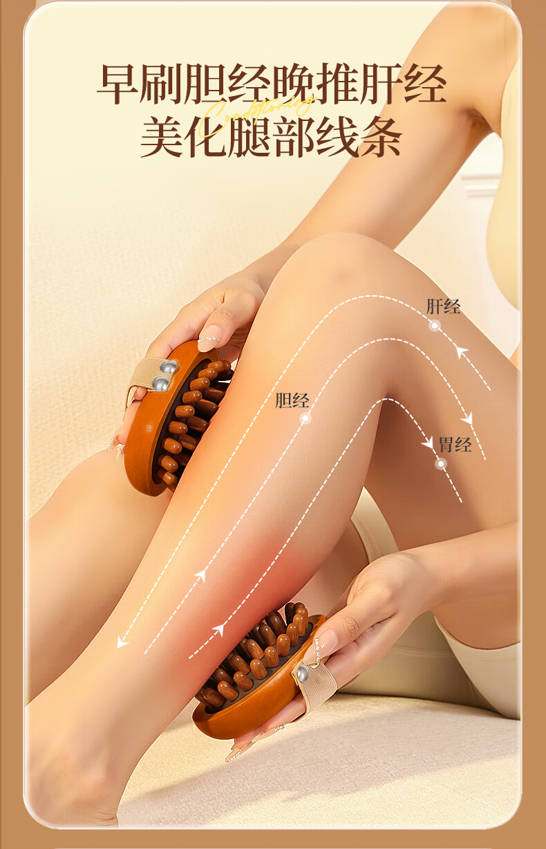 带脉经络刷全身通用按摩刷腹部刷肚子刷腹梳子按摩梳头部经络梳 棕色禾木经络刷1个+10毫升艾草精油