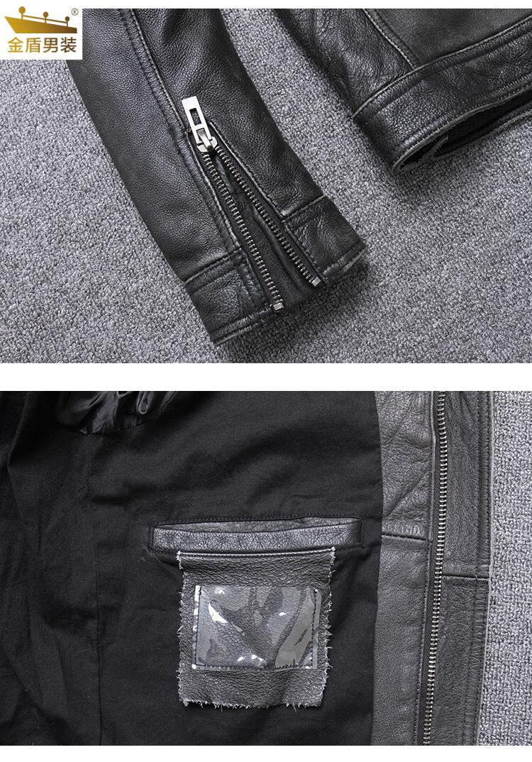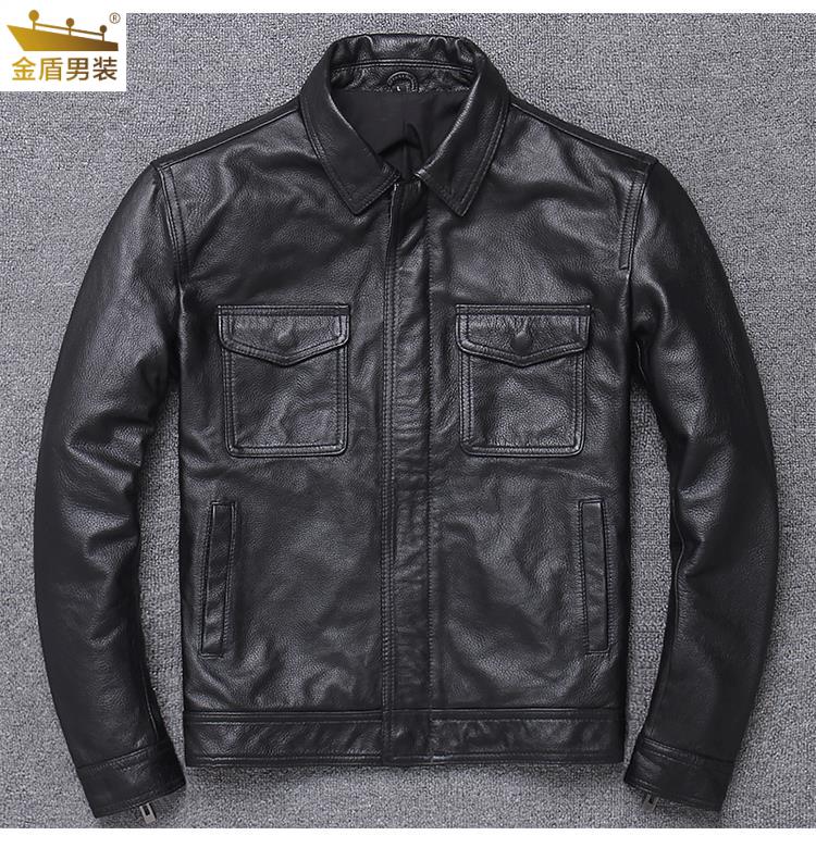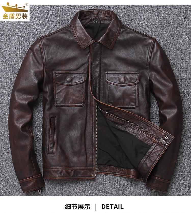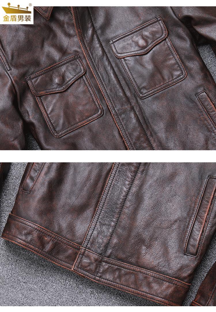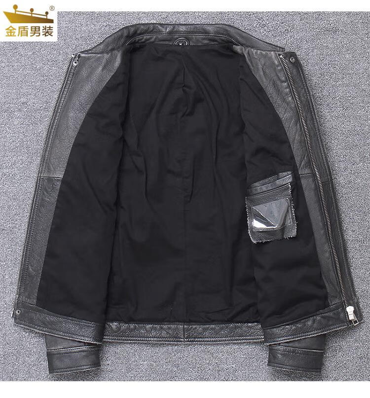 金盾特价捡漏真好皮皮衣男翻领短款牛皮纹复古做旧机车夹克秋冬款外套 厚款 咔叽皮衣-黑色 加棉 XL 体重130-150斤