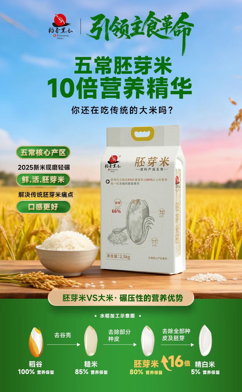 稻香黑土五常胚芽米2025新米婴幼儿童老人大米辅食留胚粳米年货5斤真空装