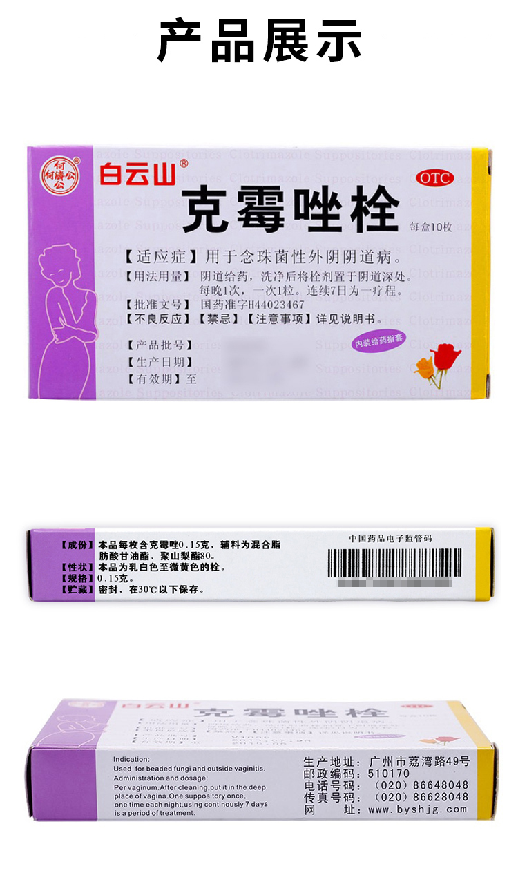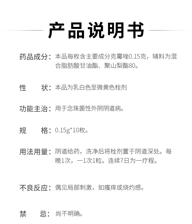 白云山 克霉唑栓0.15g* 10枚 用于念珠菌性外阴阴道病