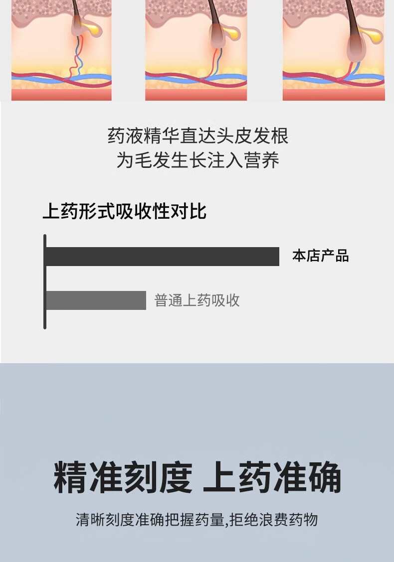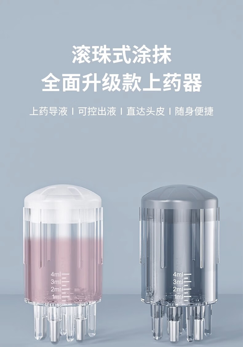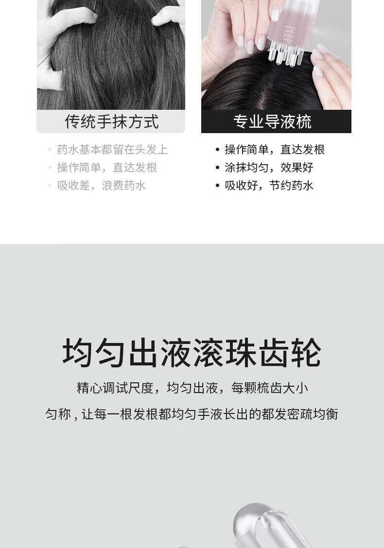 鹤沐新款头皮米诺上药器头部精油滚珠按摩地尔精华液给药涂头发导液梳 新款白色【送滴管+刷子】 4ml 1盒